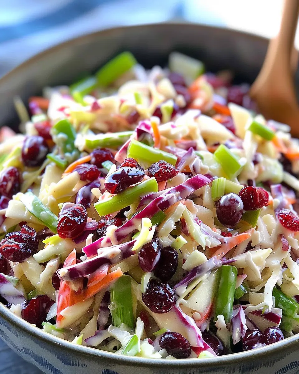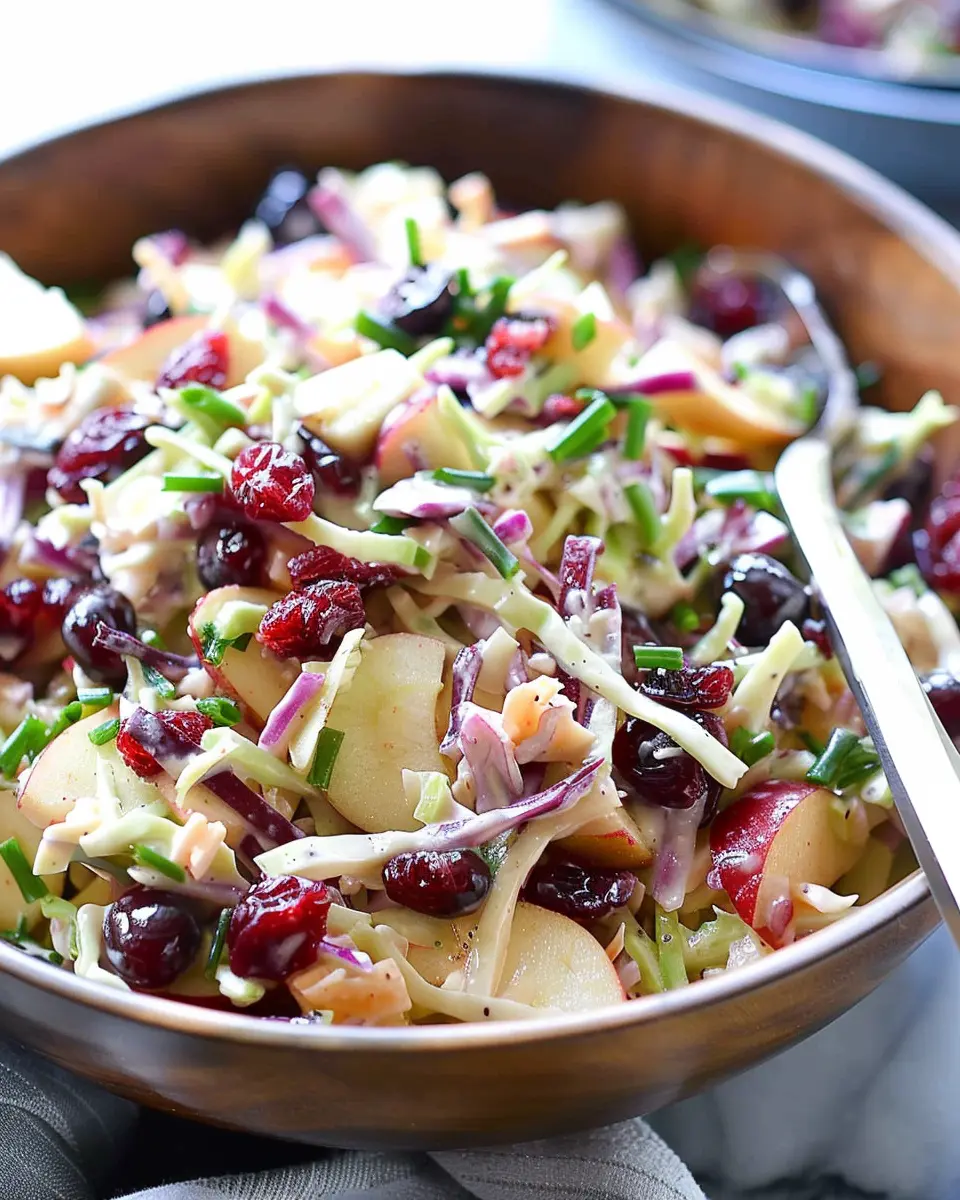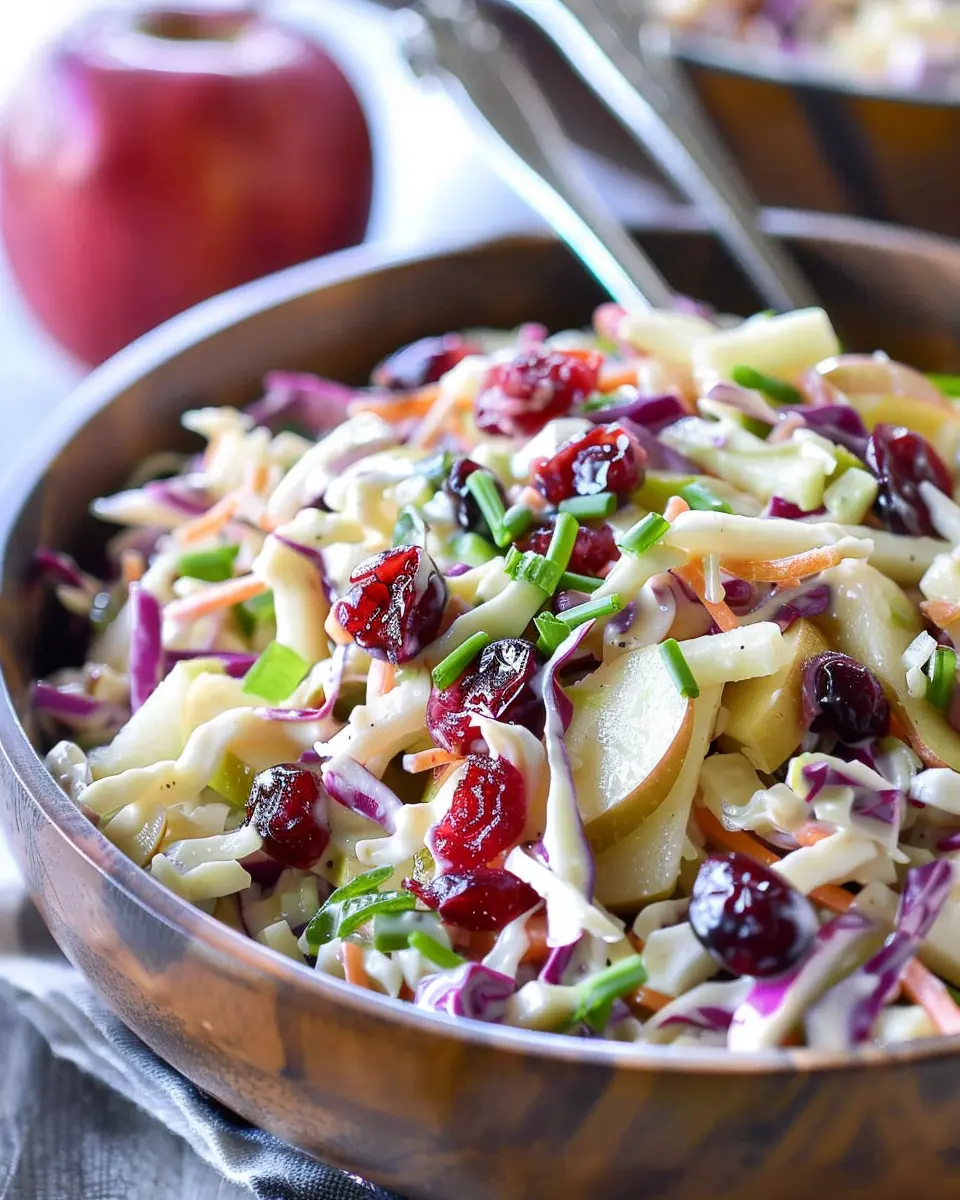 A refreshing and tangy twist on traditional coleslaw featuring the perfect combination of apples and cranberries.