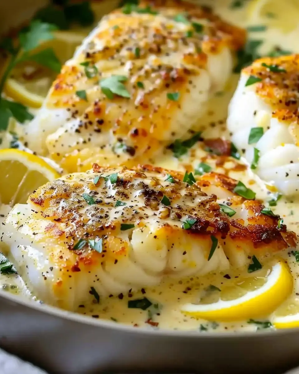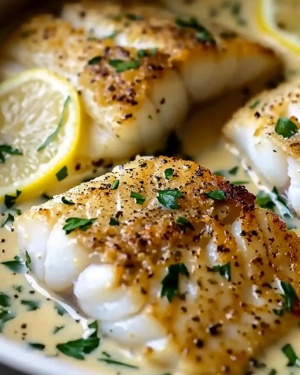 PrintBaked Cod in Coconut Lemon Cream Sauce: Easy and Indulgent Delight