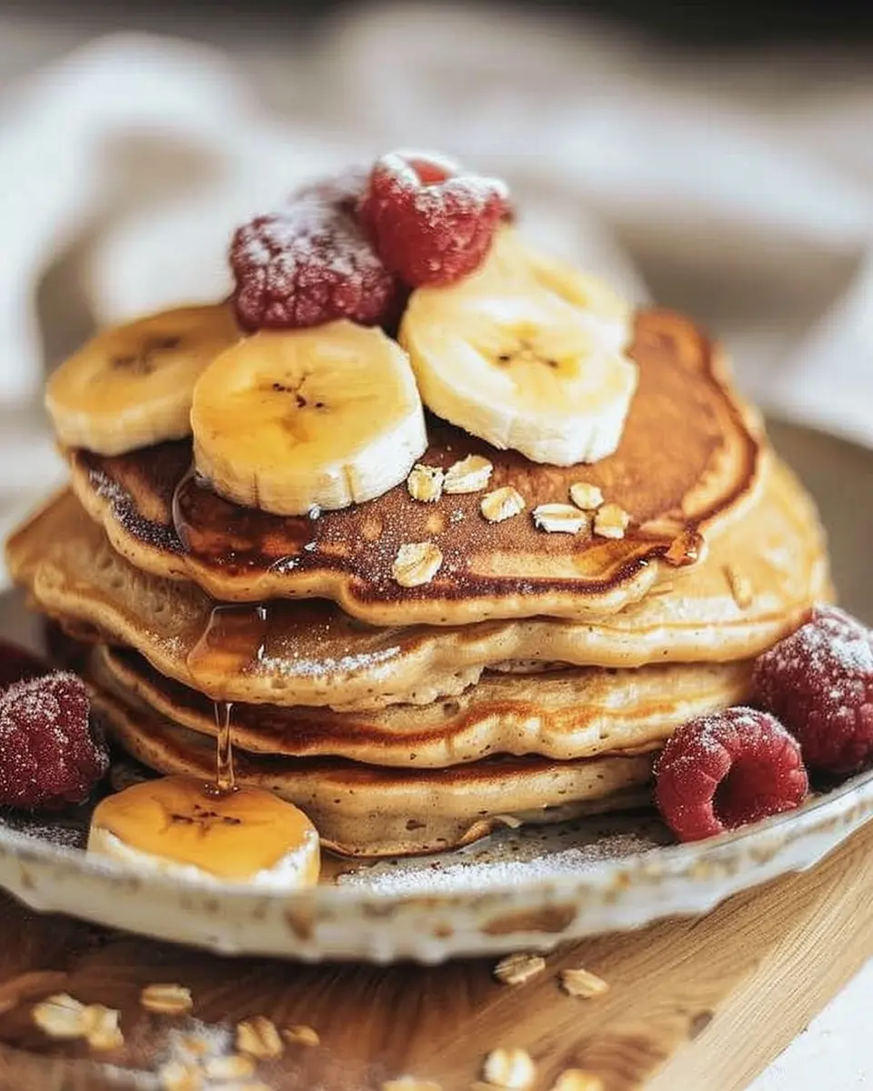 Once cooked, stack your banana oat pancakes on a plate and serve with your favorite toppings. Think fresh fruit, a drizzle of maple syrup, or even a dollop of yogurt for that creamy texture.