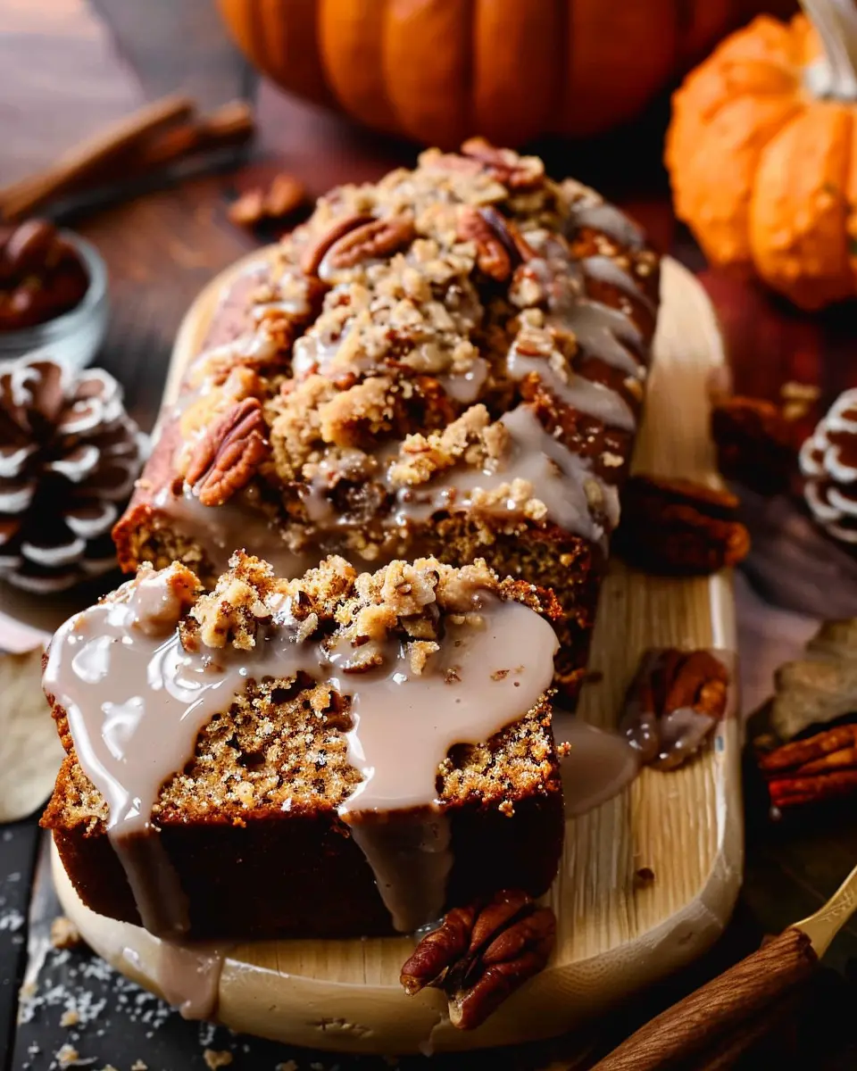 Now, let’s take your best ever pumpkin bread to the next level with our pecan streusel and maple glaze: