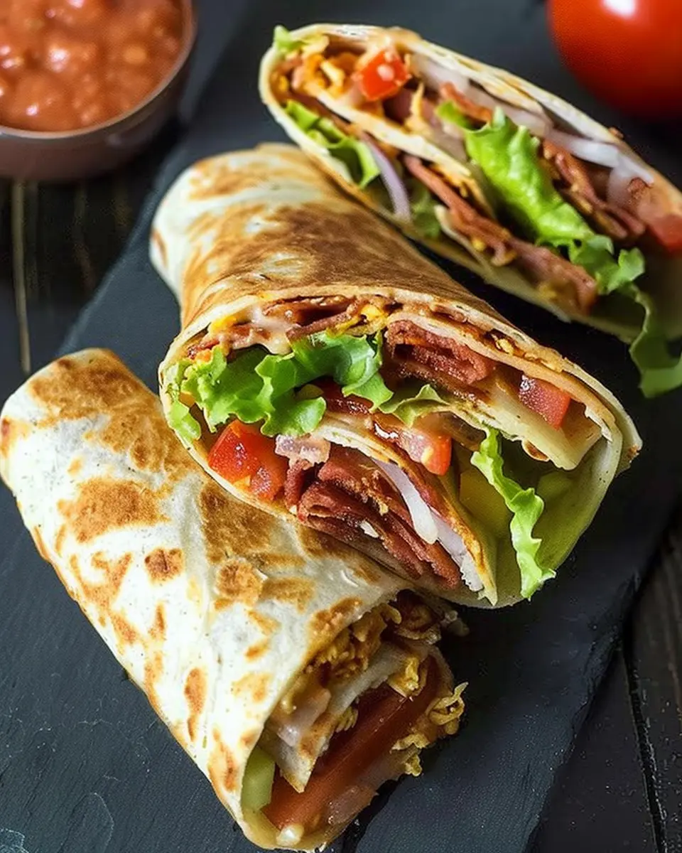 Healthy Choices: Packed with fresh lettuce, ripe tomatoes, and flavorful turkey bacon (or chicken ham), these wraps provide a nutritious balance of macronutrients to fuel your day. You can always swap in whole grain tortillas for added fiber.