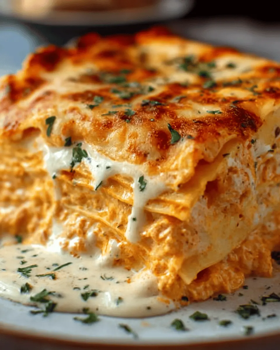 Experience the rich flavors of Buffalo Chicken Lasagna with a twist of ranch dressing. This delicious dish combines comfort food with a zesty kick, perfect for any occasion.