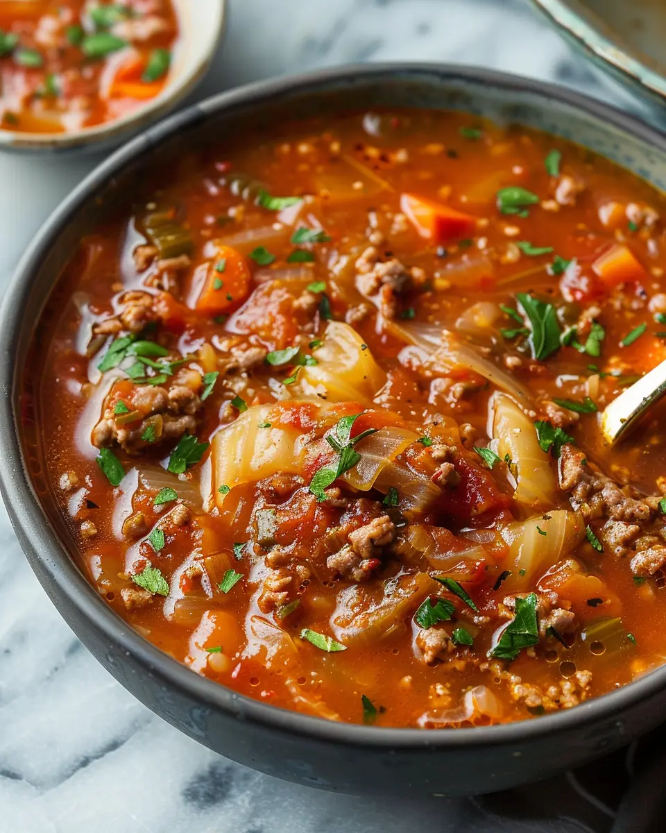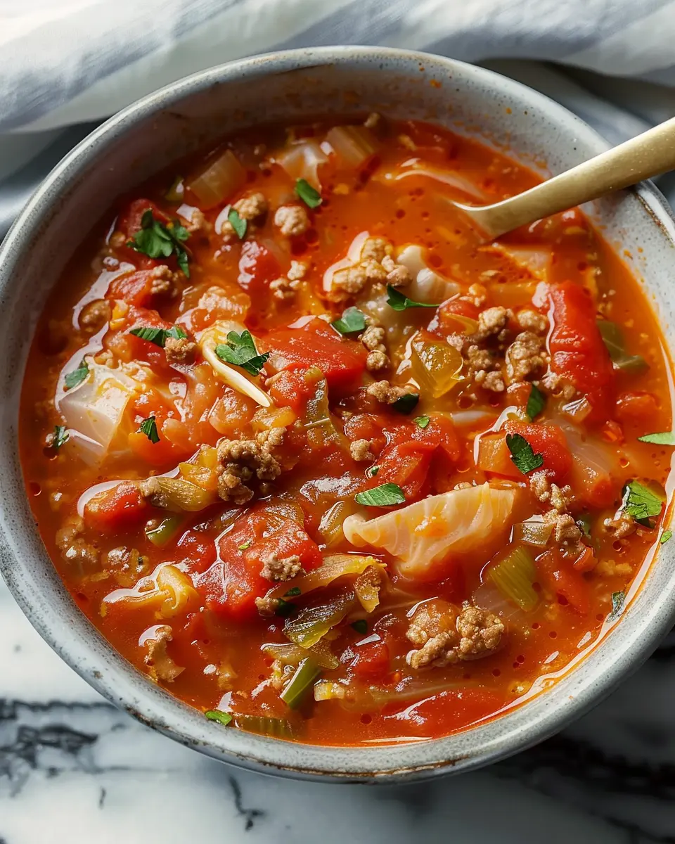 This Cabbage Roll Soup combines the flavors of classic cabbage rolls into a comforting bowl of soup, perfect for family dinners.