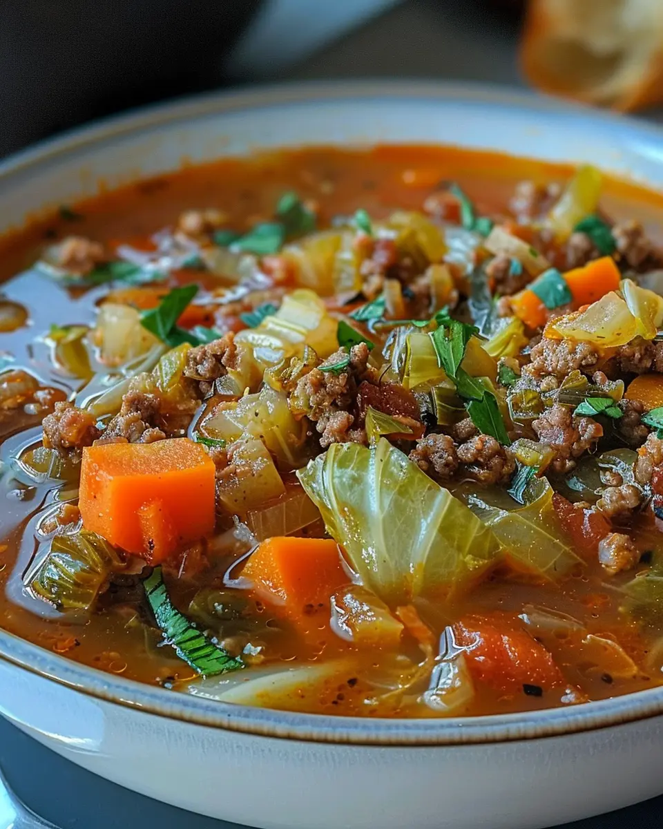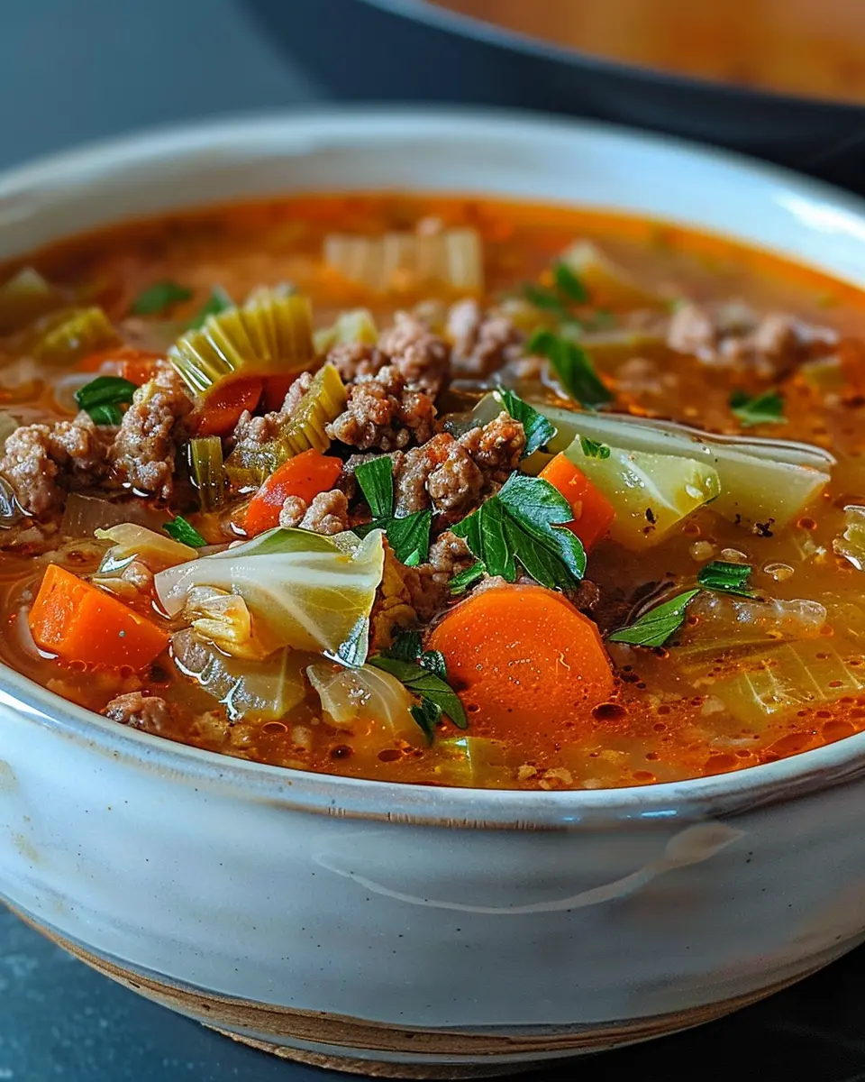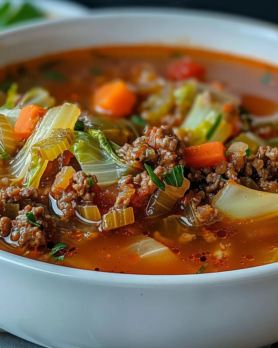 A delicious and hearty soup that combines tender cabbage with flavorful ground beef, perfect for a comforting meal.