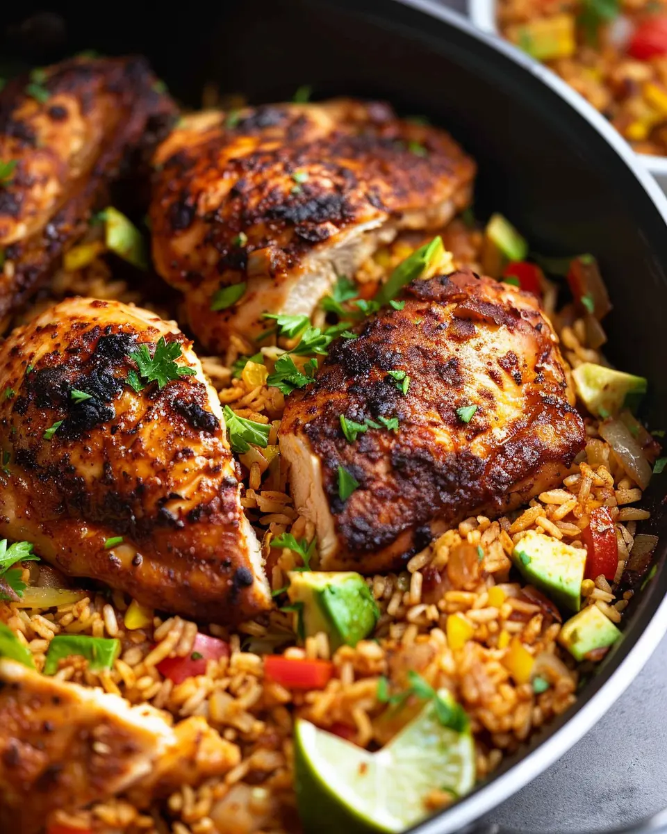 Want to take your cajun chicken rice skillet to the next level? Serve it in individual cast-iron skillets or colorful bowls for a rustic presentation. You can also top it with fresh herbs like cilantro or parsley for a burst of color and added freshness. For a fun twist, set up a DIY toppings bar with options like shredded cheese, jalapeños, and sour cream. This allows your guests to customize their servings and makes the meal feel interactive!