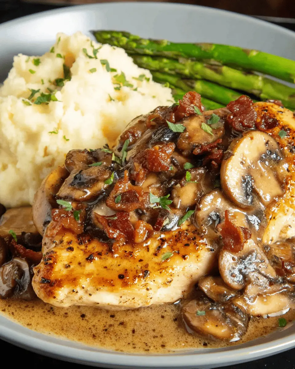 • Top it off: Generously pour the delicious mushroom Madeira sauce over the chicken. Make sure to layer it on thick; after all, you want every bite to be flavorful!
