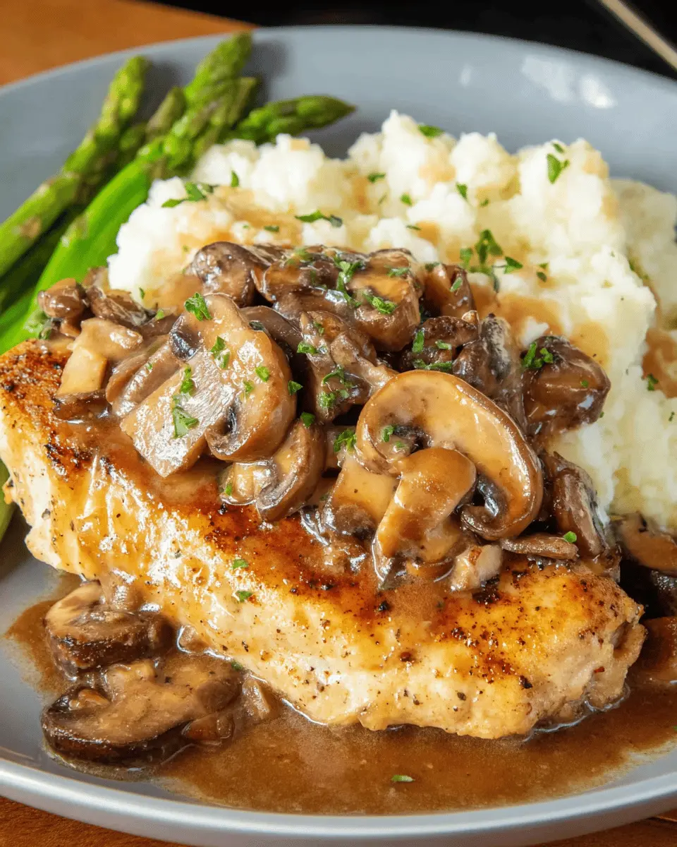• Garlic Mashed Potatoes: Creamy and buttery, they’re the perfect blank canvas for the savory mushroom sauce.