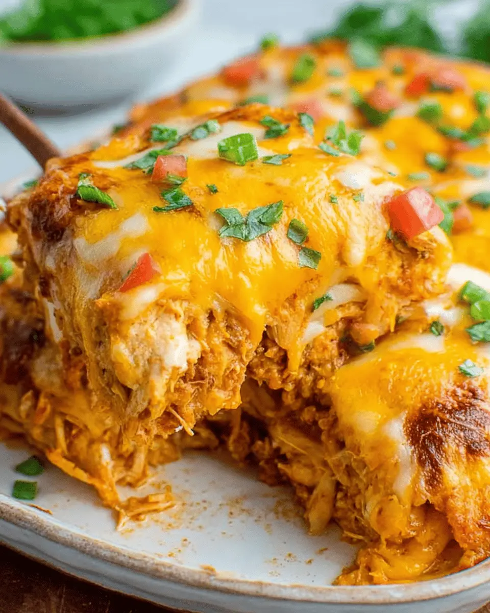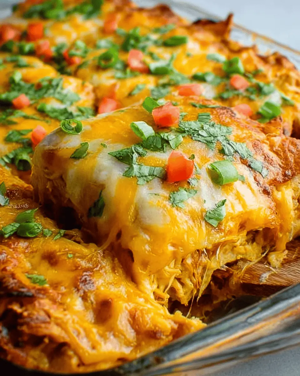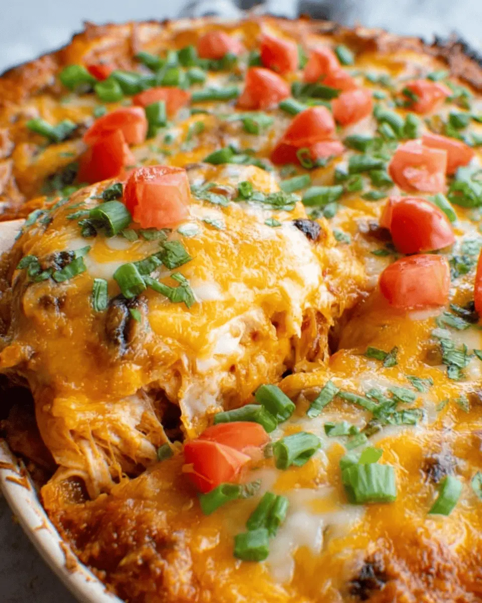 PrintCheesy Chicken Enchilada Casserole: Easy, Indulgent Family Favorite