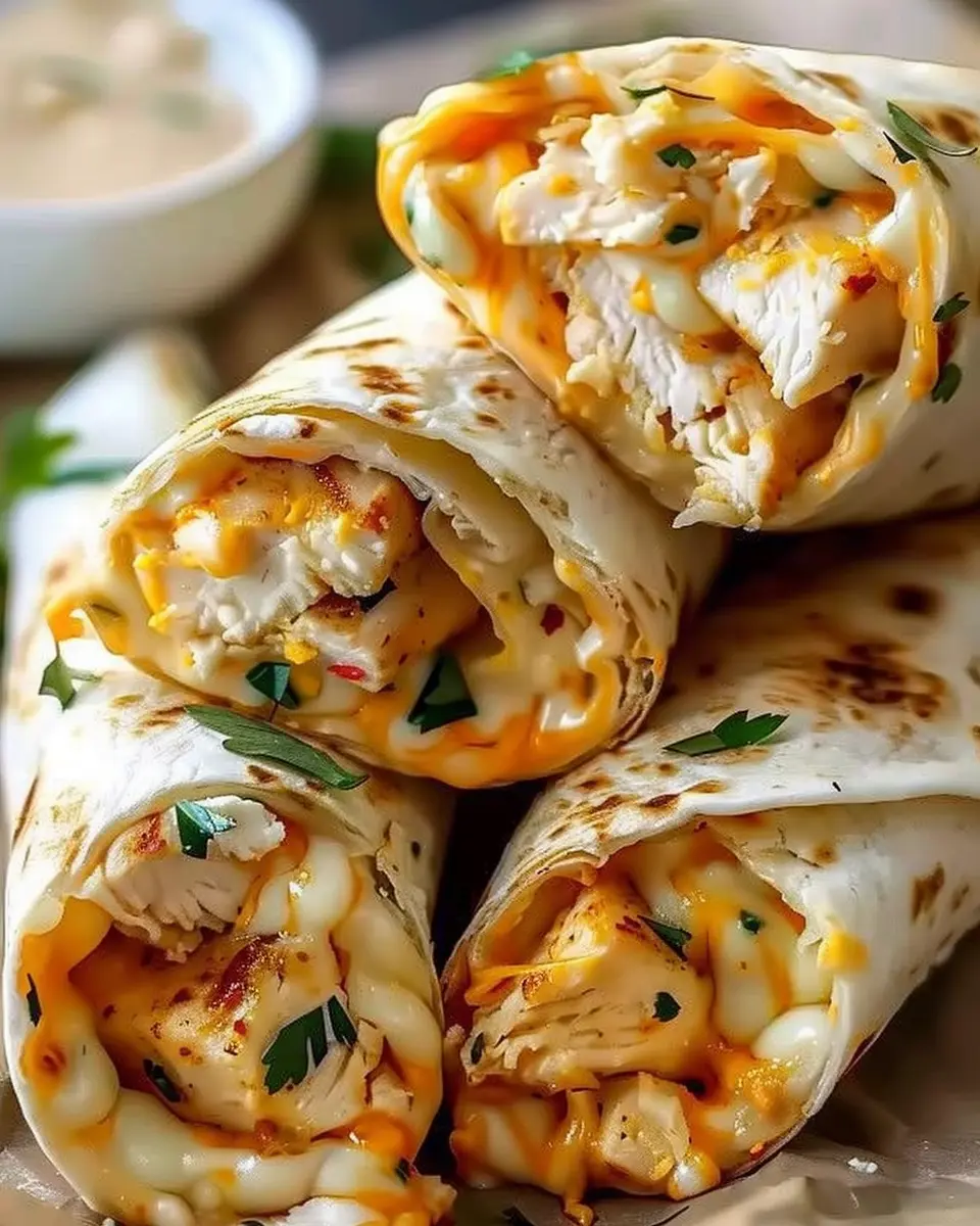 These cheesy garlic chicken wraps are a crowd-pleaser that’s quick to prepare, flavorful, and perfect for any occasion. Happy cooking!