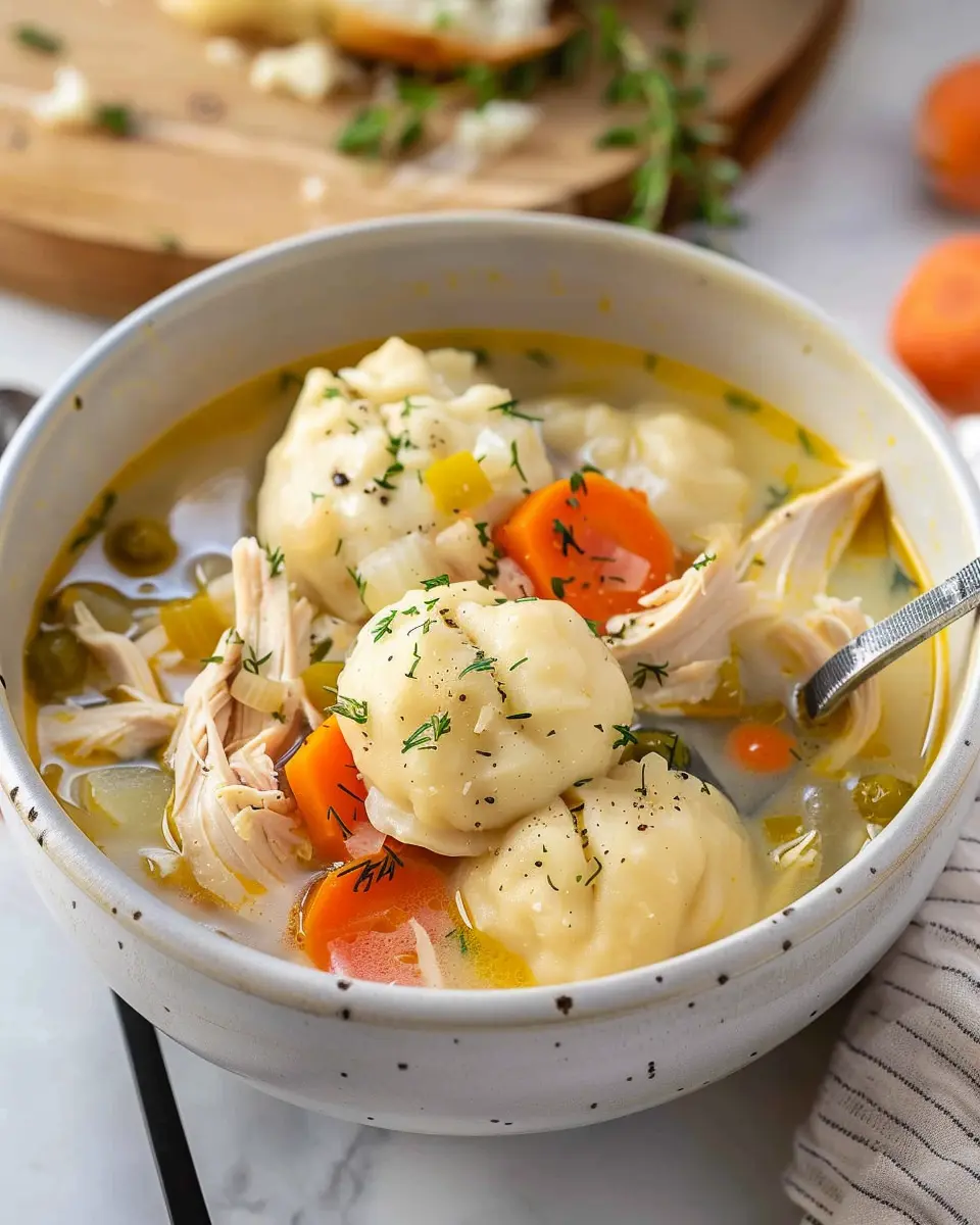 A warm and hearty chicken dumpling soup that brings comfort to your soul.
