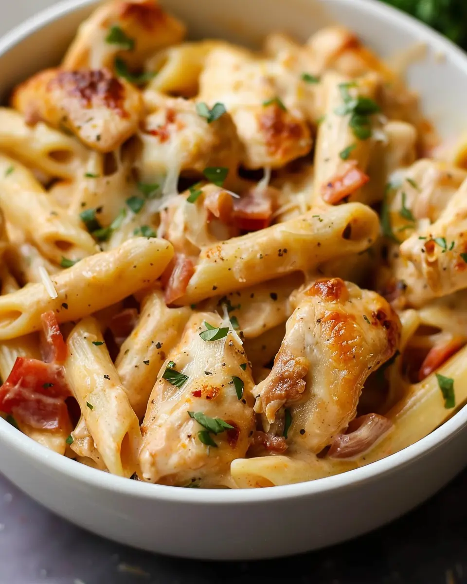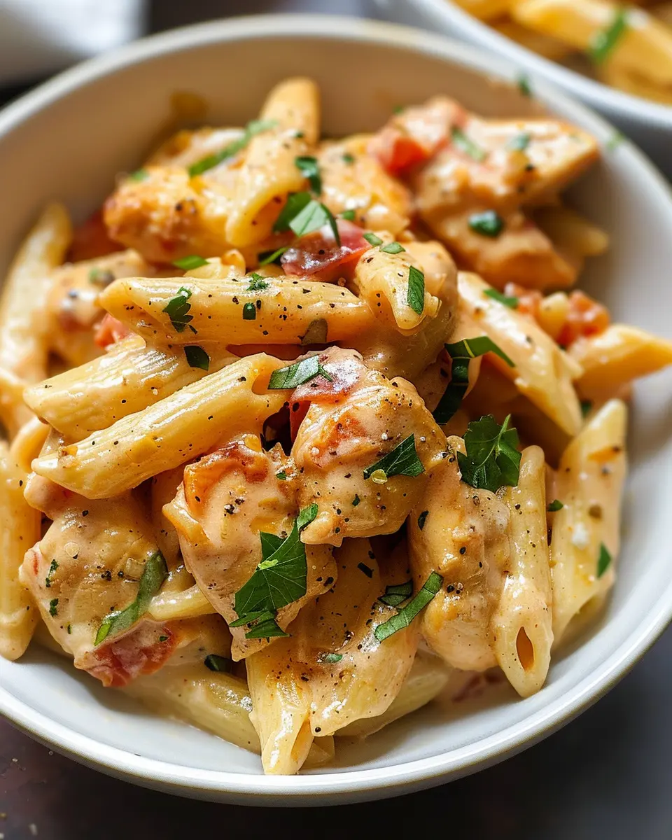 Before serving, garnish with a sprinkle of fresh parsley or additional cheese for that final touch. This is your opportunity to get creative—consider adding sun-dried tomatoes or a side salad for color and texture. Serve your chicken penne warm, and watch your friends gather around, eager to dive in. Trust me, turning a simple weeknight dinner into a gathering around chicken penne will make you feel like a culinary star!