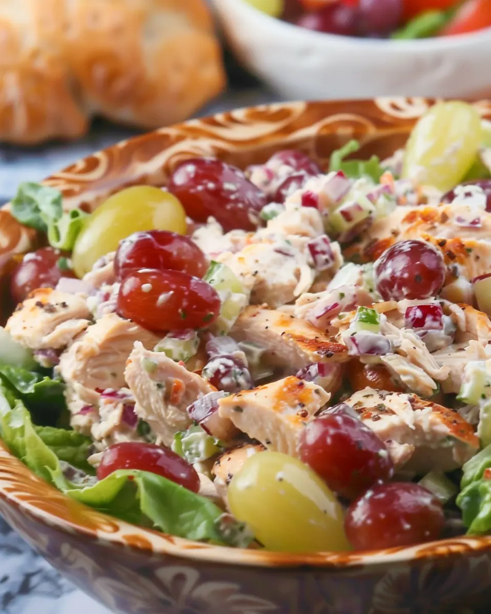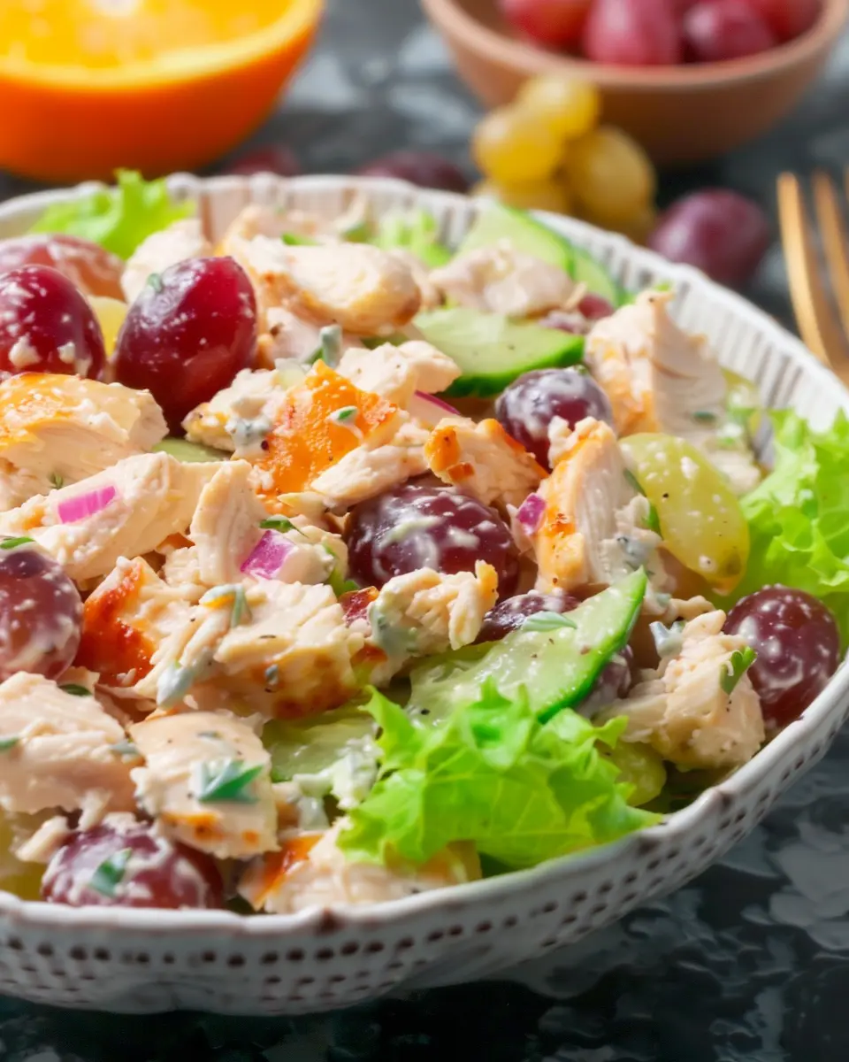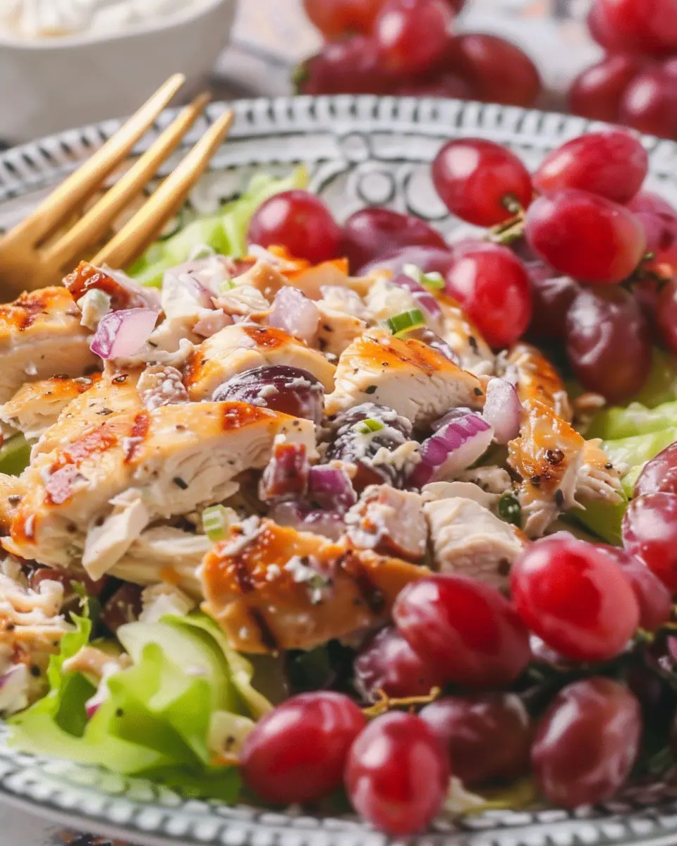 You might be wondering, what makes this dish so special? Let’s break it down. First off, this salad is a fantastic blend of flavors and textures. The tender chicken provides a rich, protein-packed base, while the grapes contribute a delightful sweetness that balances the savory elements. It’s an unexpected combination that works wonderfully and keeps your taste buds intrigued.