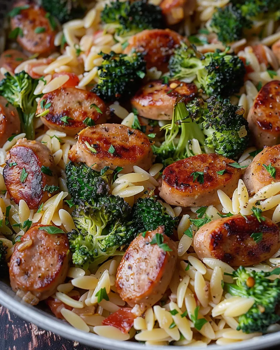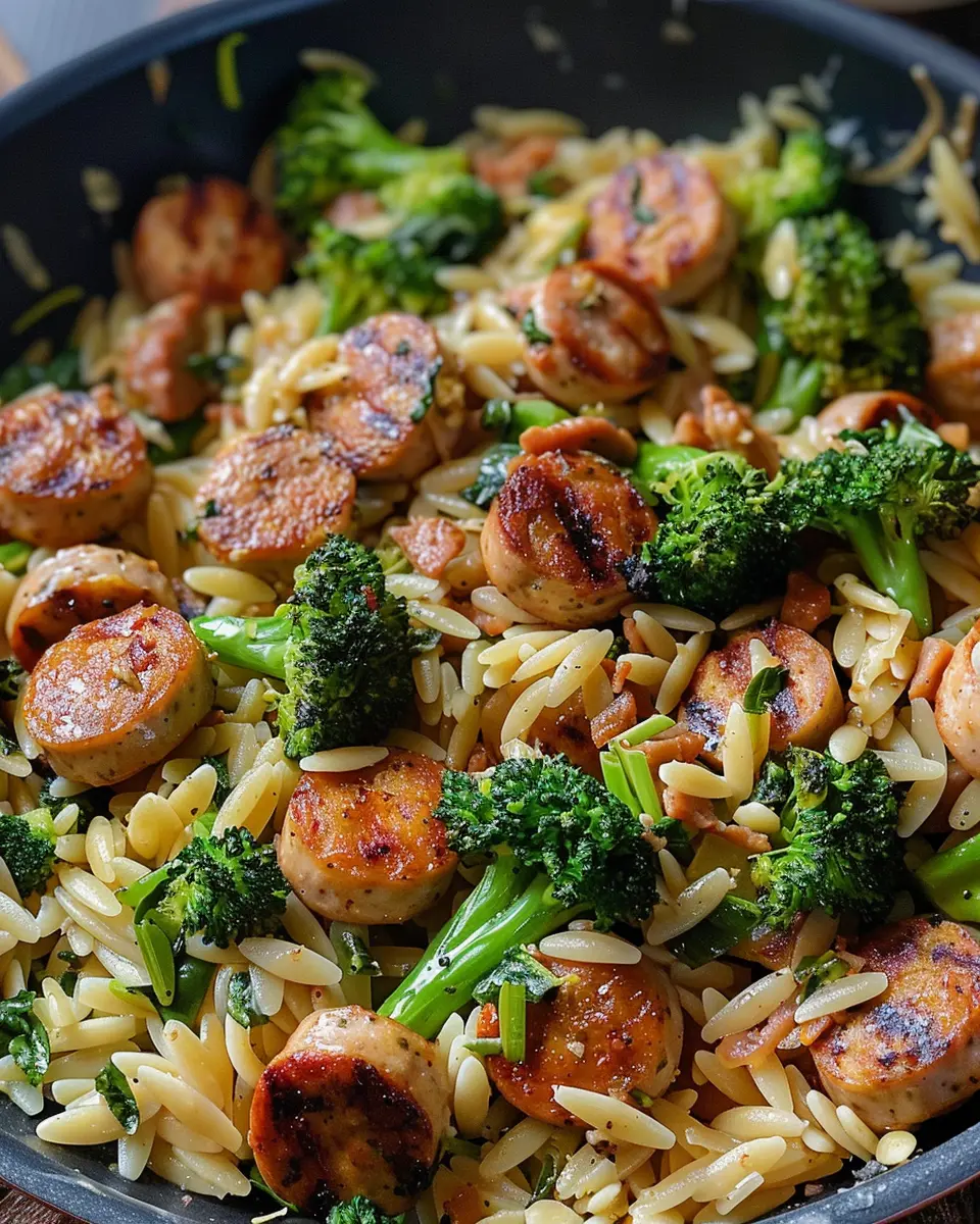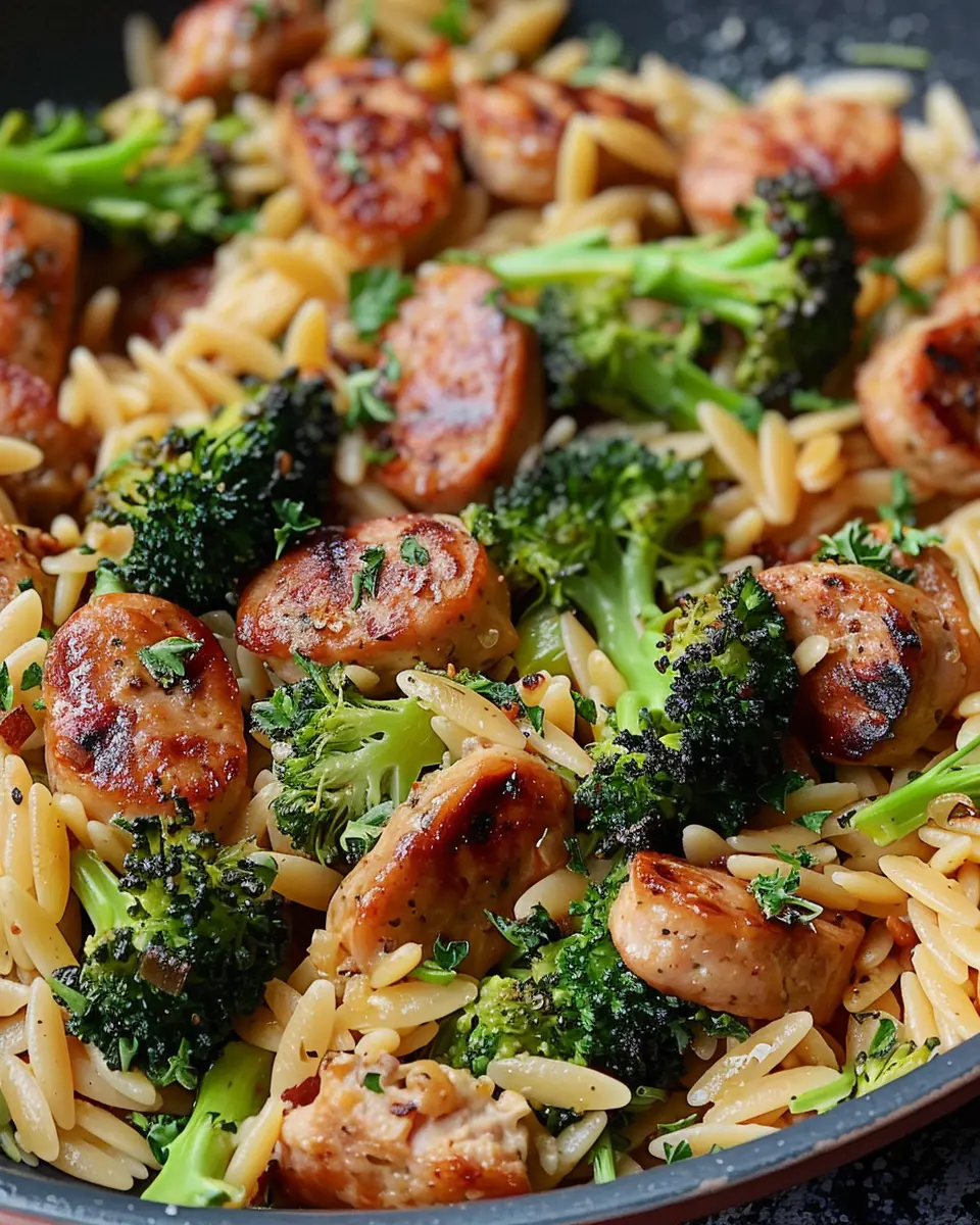 A delicious and easy meal combining chicken sausage, broccoli, and orzo for a quick and nutritious dinner.