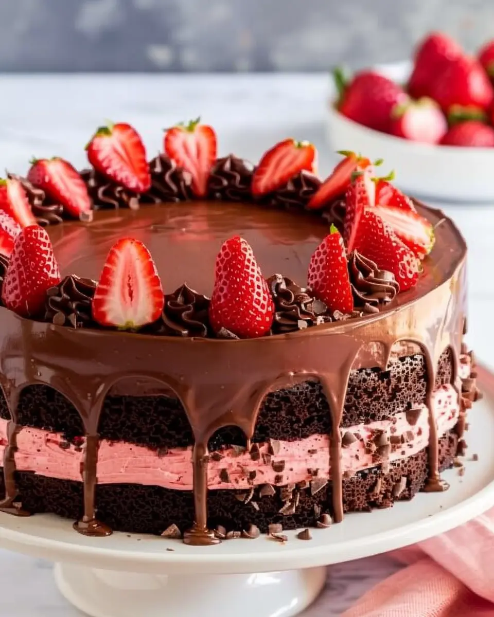 And there you have it! Your stunning chocolate strawberry cake is ready to impress. Don’t forget to take a picture before you slice into it — your friends will definitely want to see it on your social feeds! Enjoy sharing this delightful treat, and remember, baking is about savoring the journey as much as the destination.