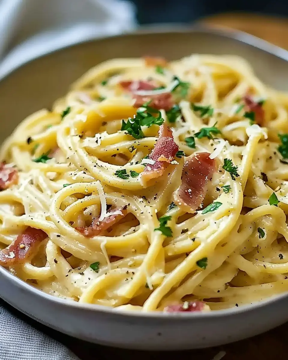 If you’re looking to switch things up, try using chicken ham instead of turkey bacon for a leaner and equally flavorful twist. The chicken ham brings a different texture and a subtle sweetness that pairs wonderfully with the creamy sauce. Here’s how to make this variation: