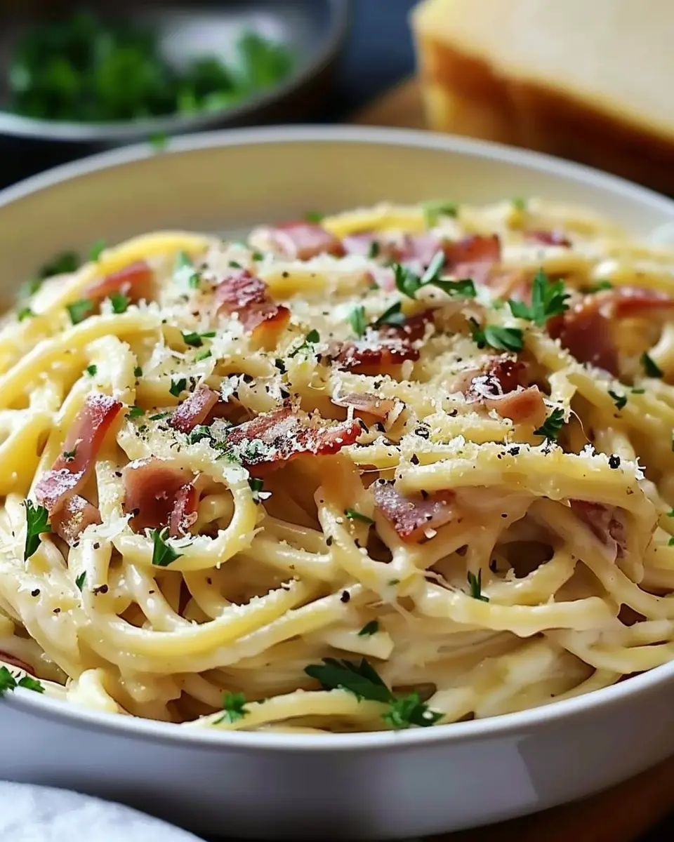 Classic Spaghetti Carbonara: An Easy Twist with Turkey Bacon and Chicken Ham