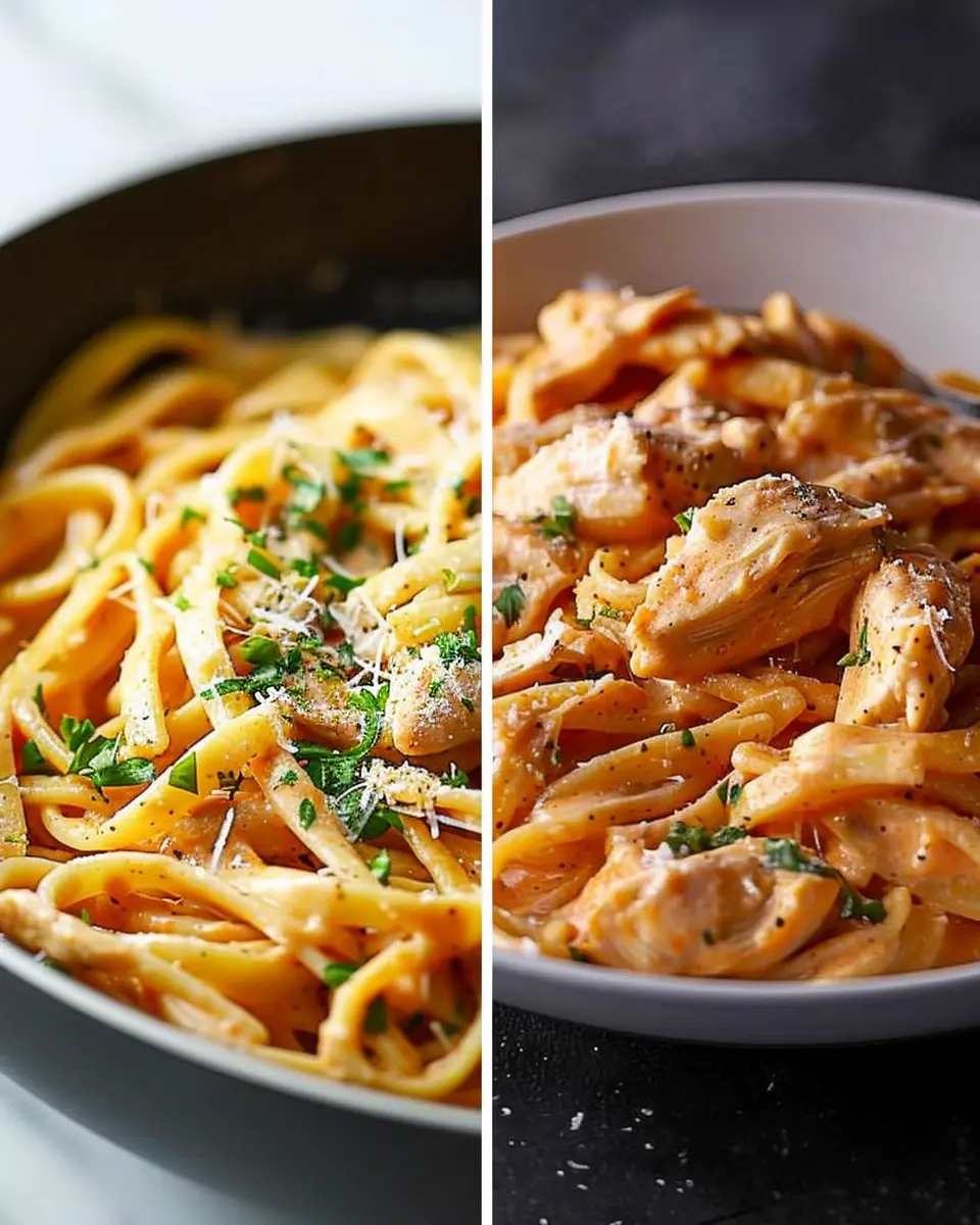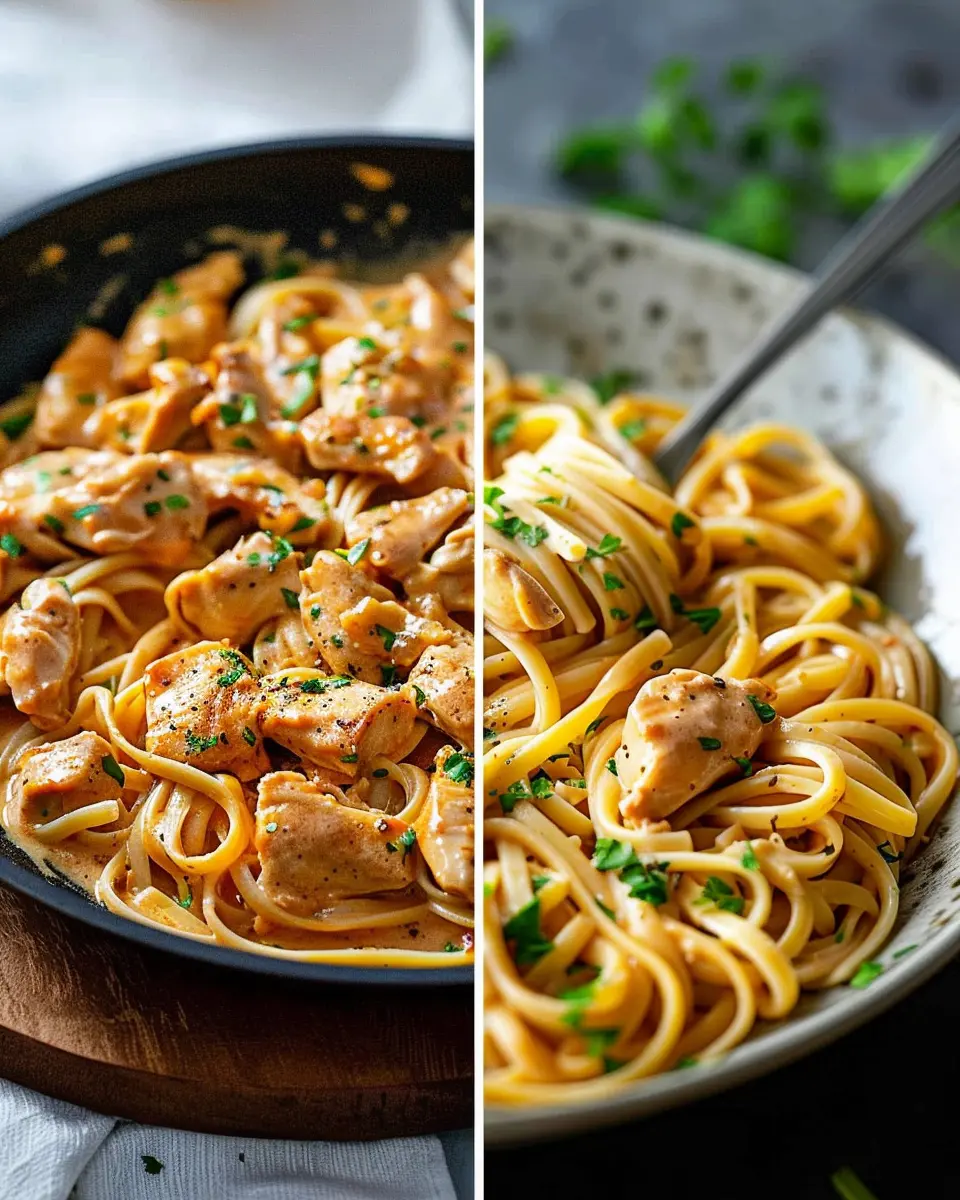 A rich and creamy pasta dish that combines tender chicken with buttery flavors, perfect for a comforting meal.