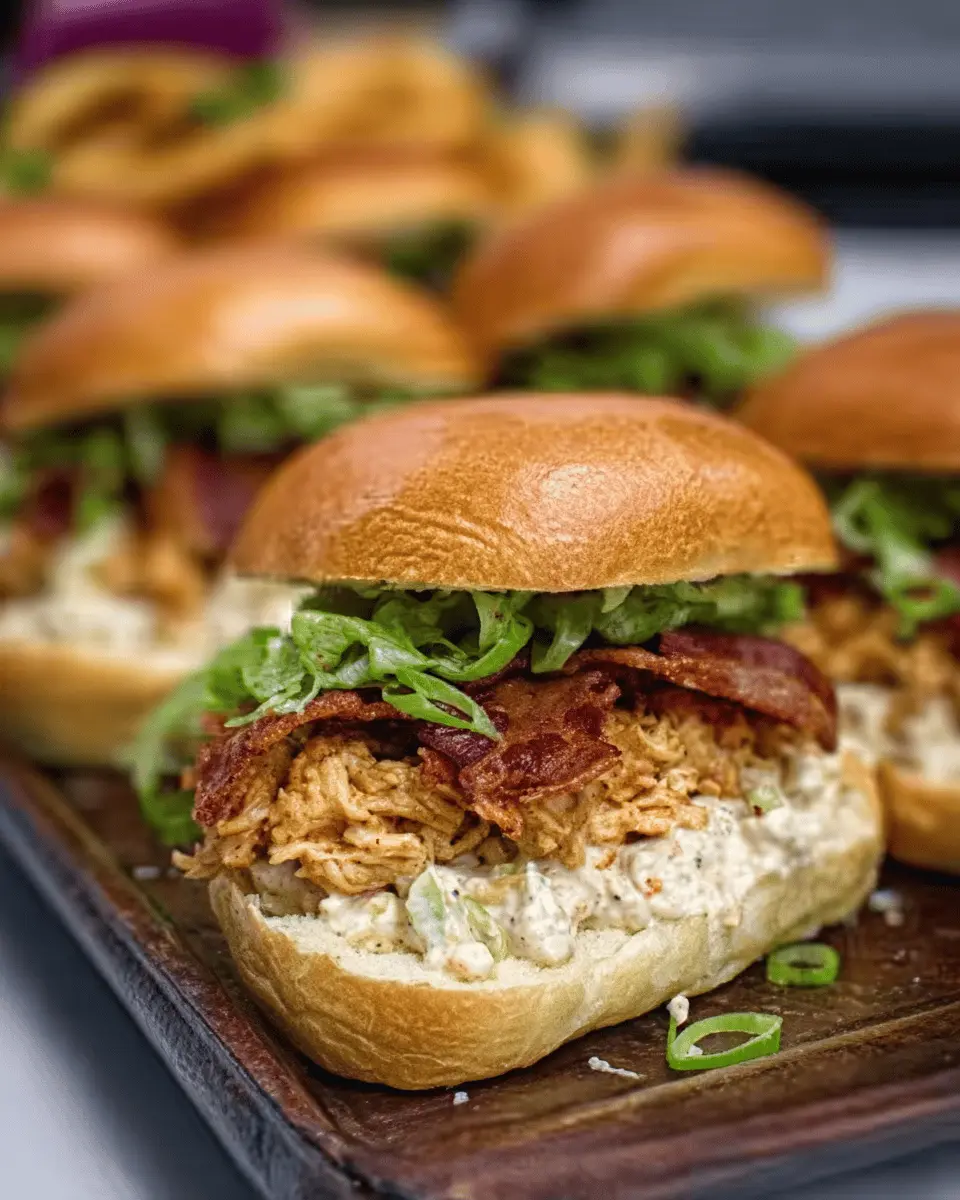 Now comes the moment you’ve been waiting for — assembly! Take the toasted buns and layer a generous scoop of your flavorful crack chicken filling onto the bottom half.