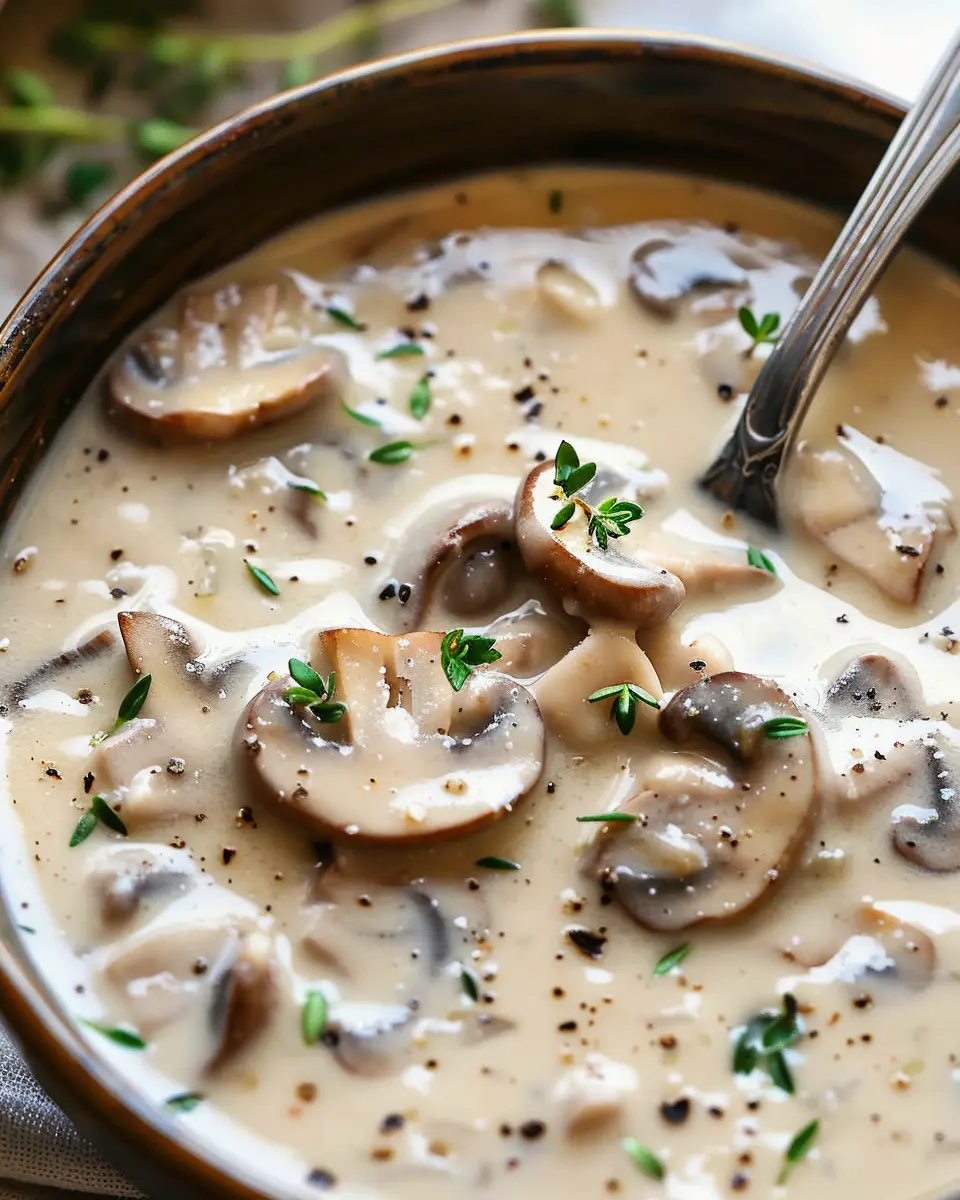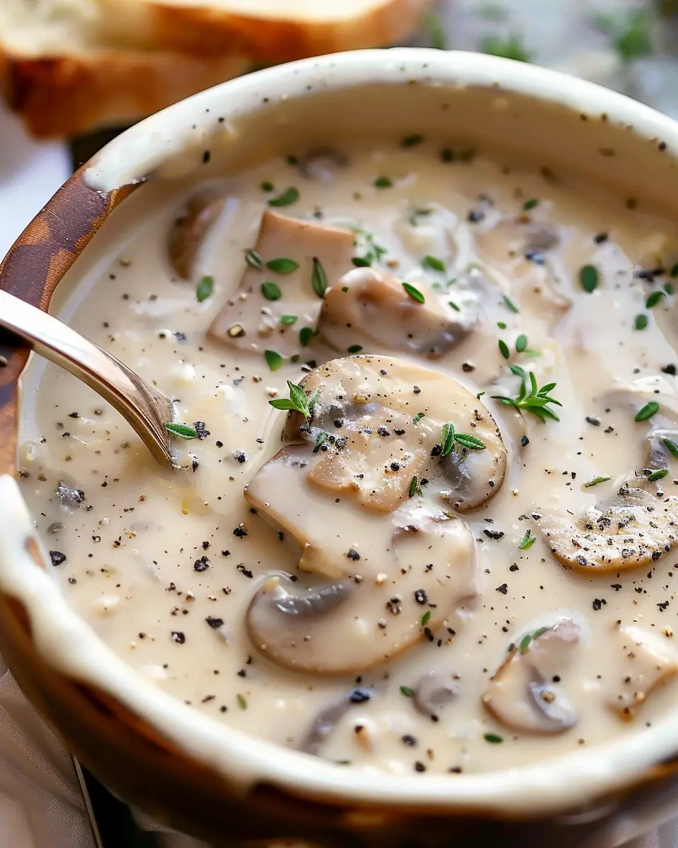 This cream of mushroom soup is the ultimate comfort food, enriched with the savory flavors of turkey bacon. Perfect for cold evenings!