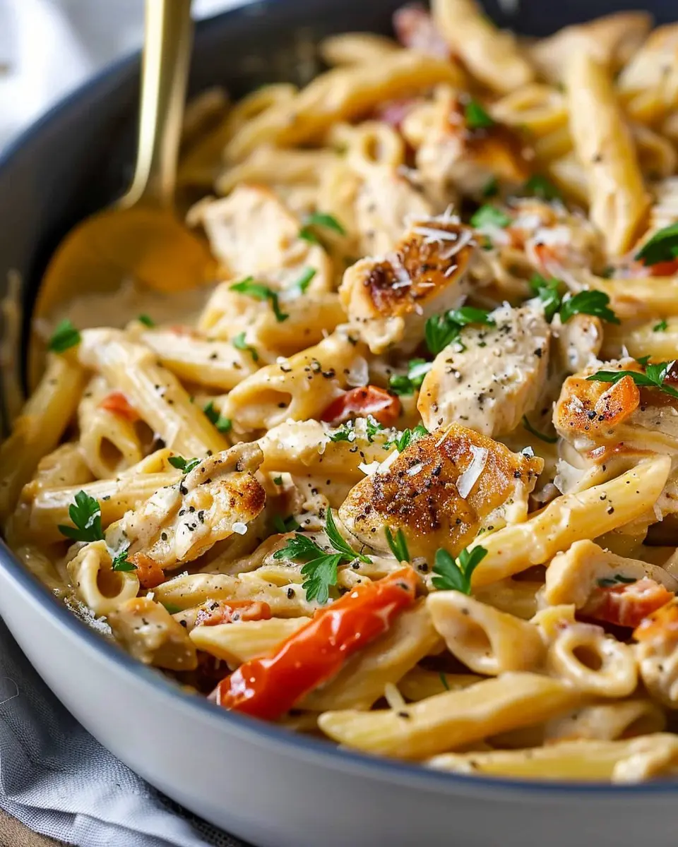 The creamy sauce is the star of the show, enveloping every piece of pasta and chicken in a rich, velvety embrace. This creates a lusciously satisfying dish that feels indulgent without being overly heavy. In fact, many food enthusiasts believe that indulging in comforting meals like this one can provide psychological benefits—after all, who doesn’t feel good after a warm bowl of pasta?