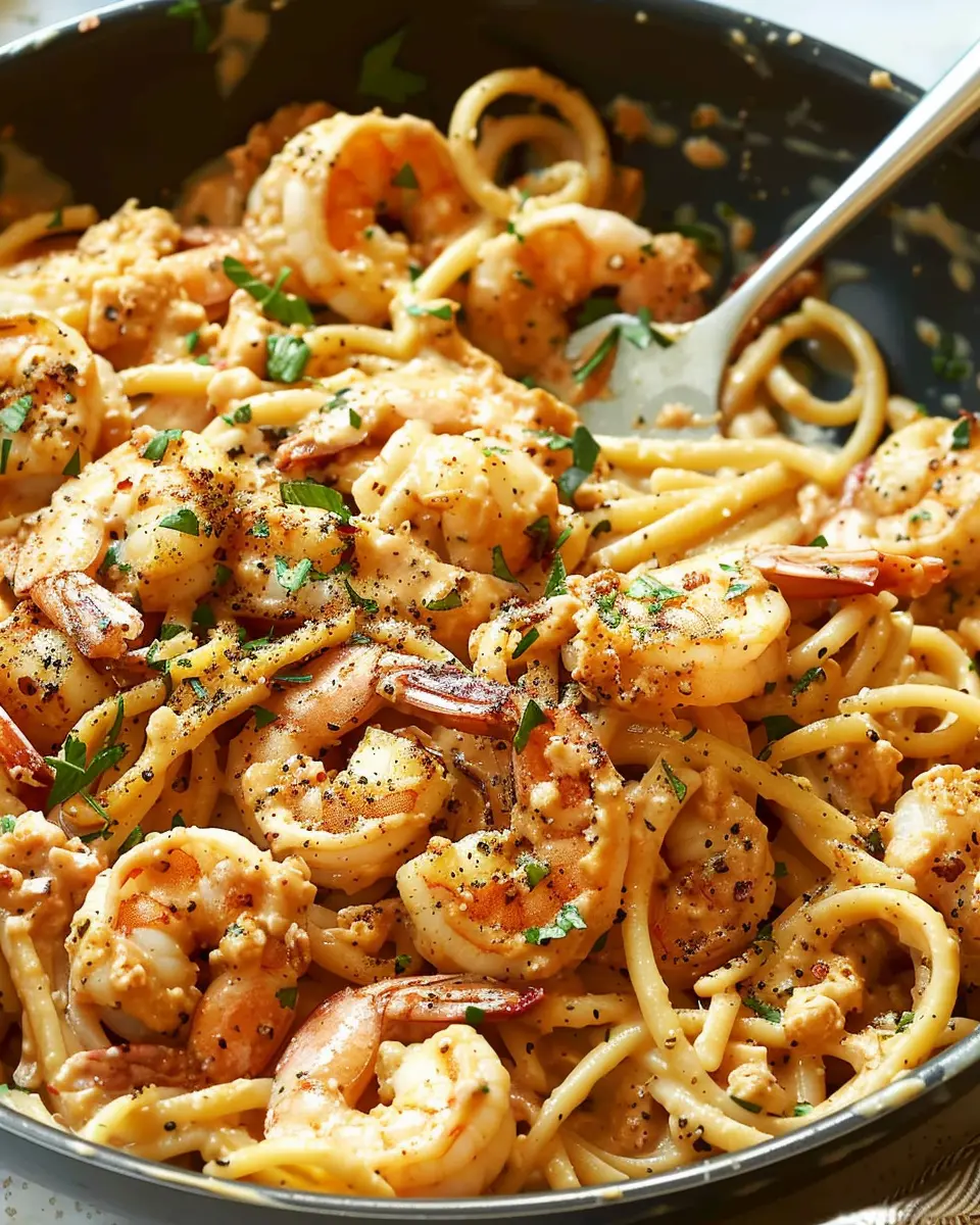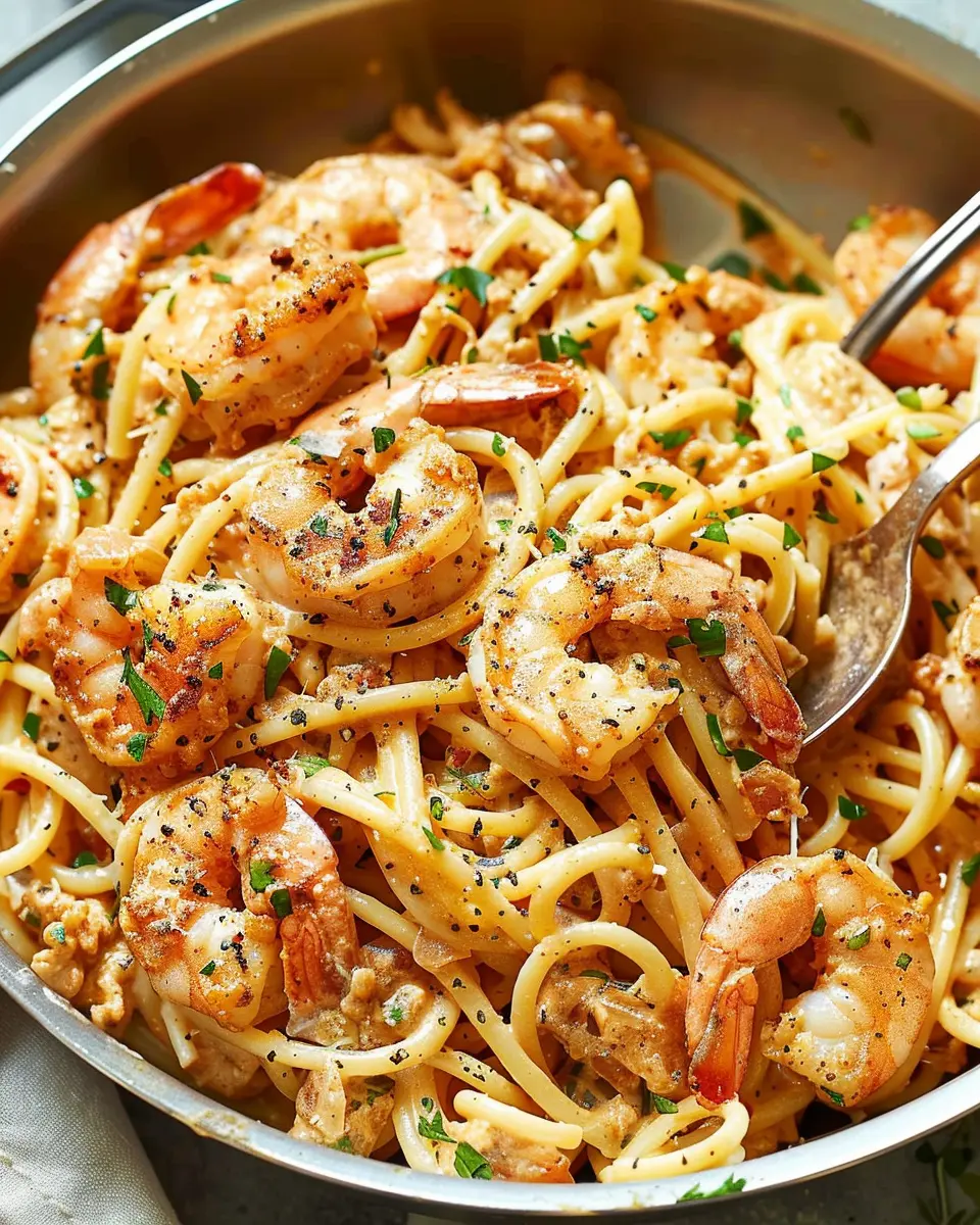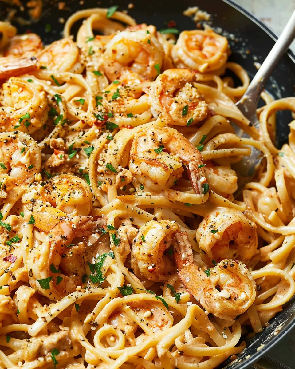 PrintCreamy Cajun Shrimp Pasta: Indulgent Dinner with Turkey Bacon