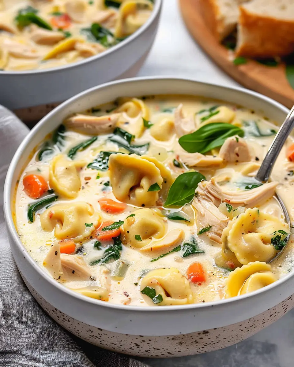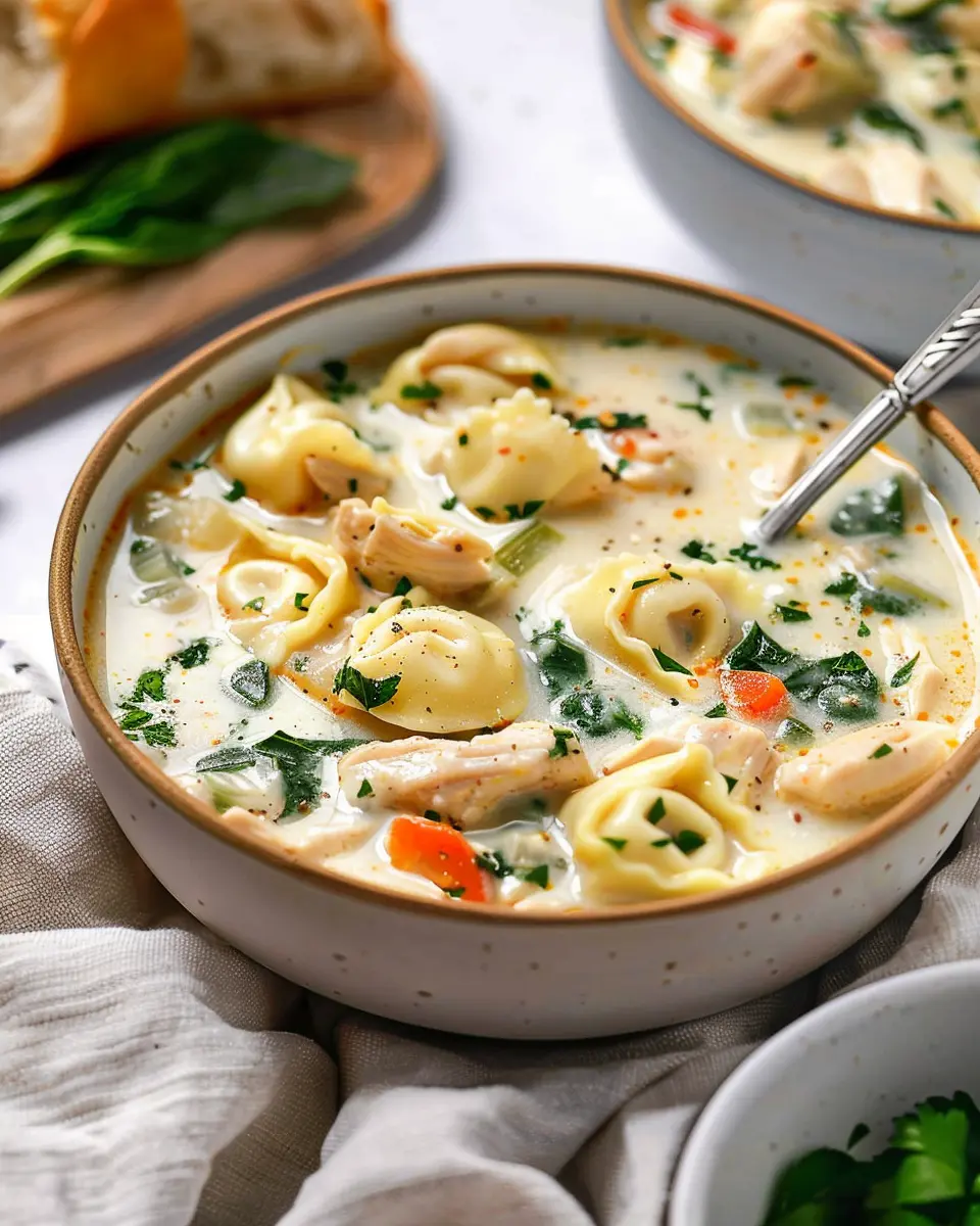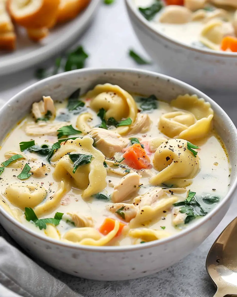 Versatile and Customizable: One of the best parts of creamy chicken tortellini soup is its versatility. Feel free to toss in whatever vegetables you have on hand—spinach, carrots, or even frozen peas work beautifully. You can tailor it to suit your tastes or dietary preferences, making it a fantastic option for those who love to experiment in the kitchen.