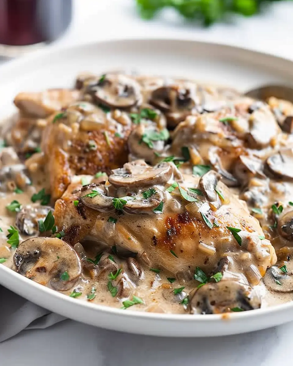 Once your chicken is perfectly seared, remove it from the skillet and keep it warm. In the same skillet, add another drizzle of olive oil, followed by sliced mushrooms, minced garlic, and finely chopped shallots. Sauté them for about 5-7 minutes until they’re tender and fragrant.