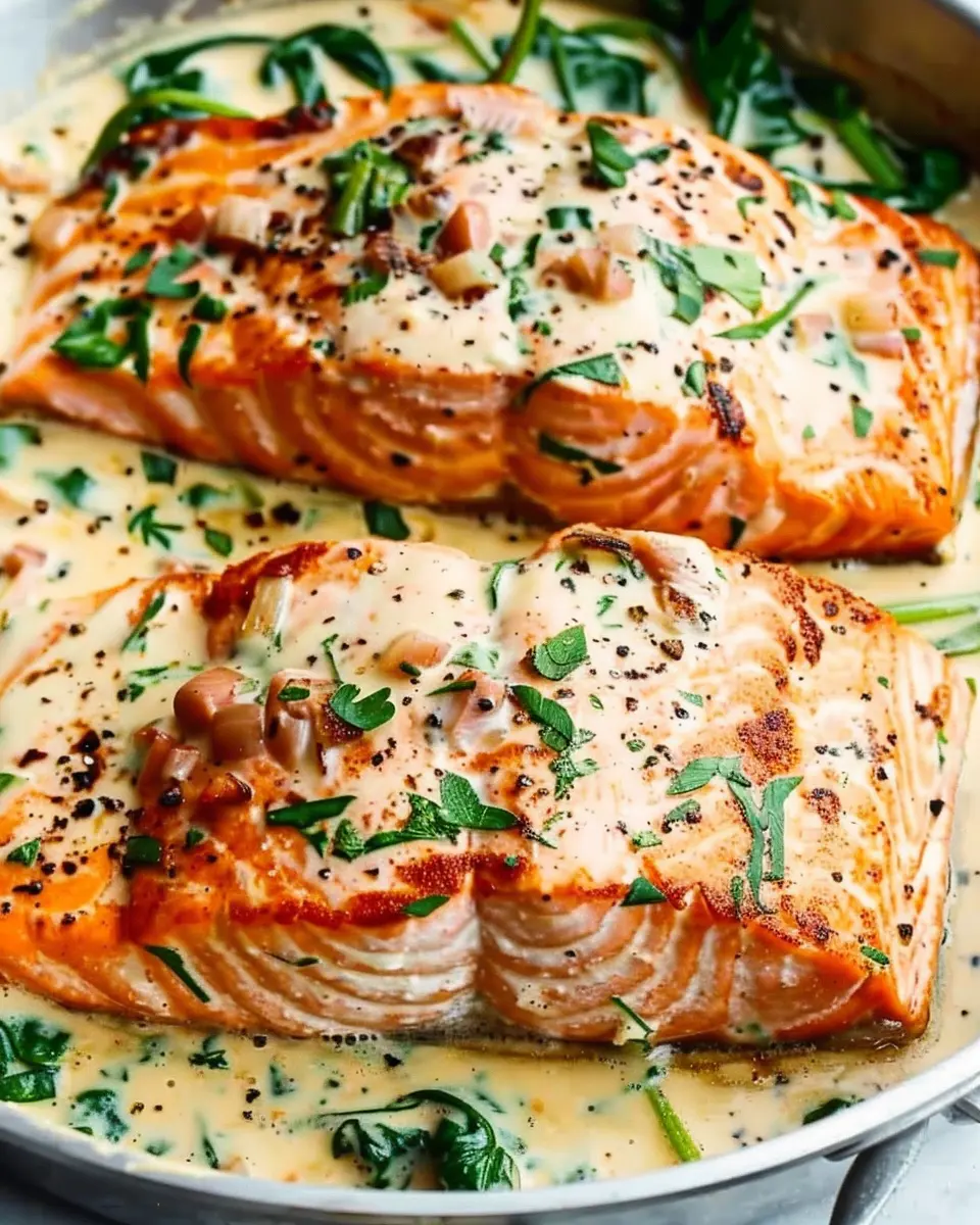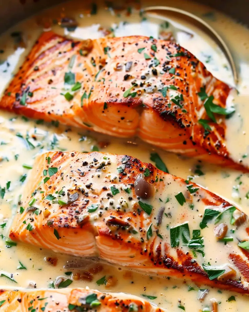 Finally, return the salmon fillets to the skillet. Spoon the creamy sauce over the salmon, allowing it to soak up all those rich flavors. Let it cook for an additional minute, just to warm everything through.