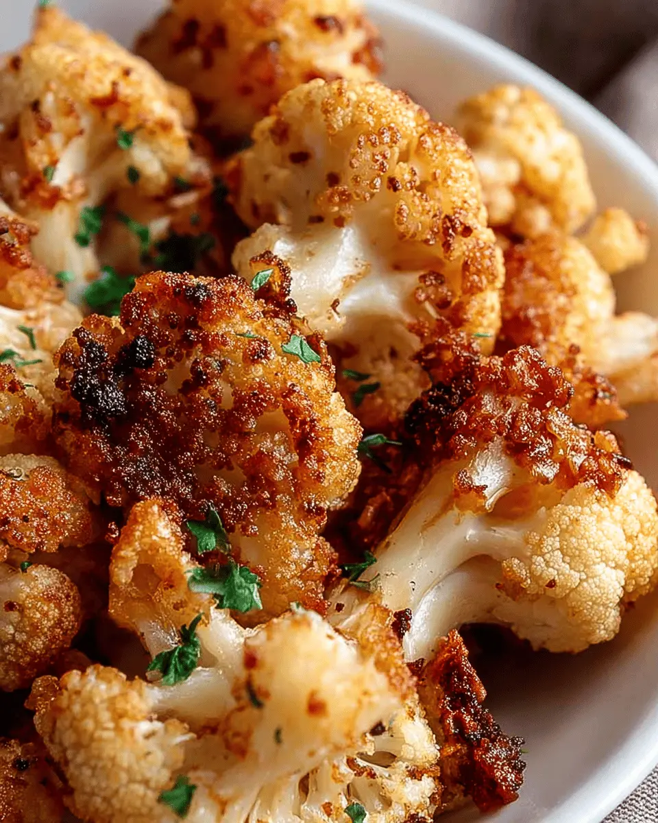 For cheese lovers, this variation combines the crispy roasted cauliflower you adore with rich, nutty flavors from Parmesan.