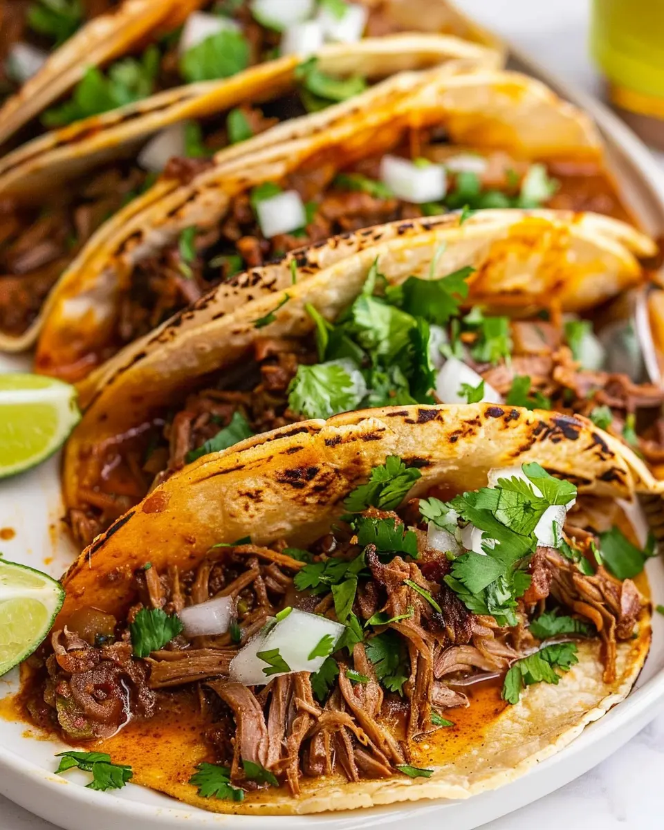 These tacos take the classic recipe and elevate it to another level by using a slow cooker, which allows the beef to become beautifully tender and marinated in a savory broth of chiles, tomatoes, and spices. The result? Juicy, flavorful meat that practically melts in your mouth, perfect for stuffing into warm tortillas.