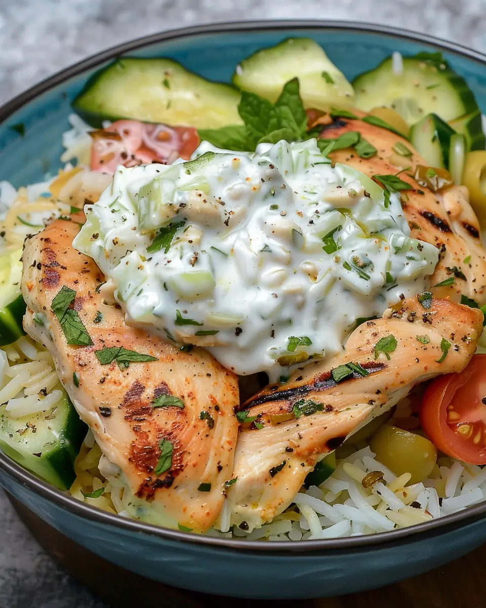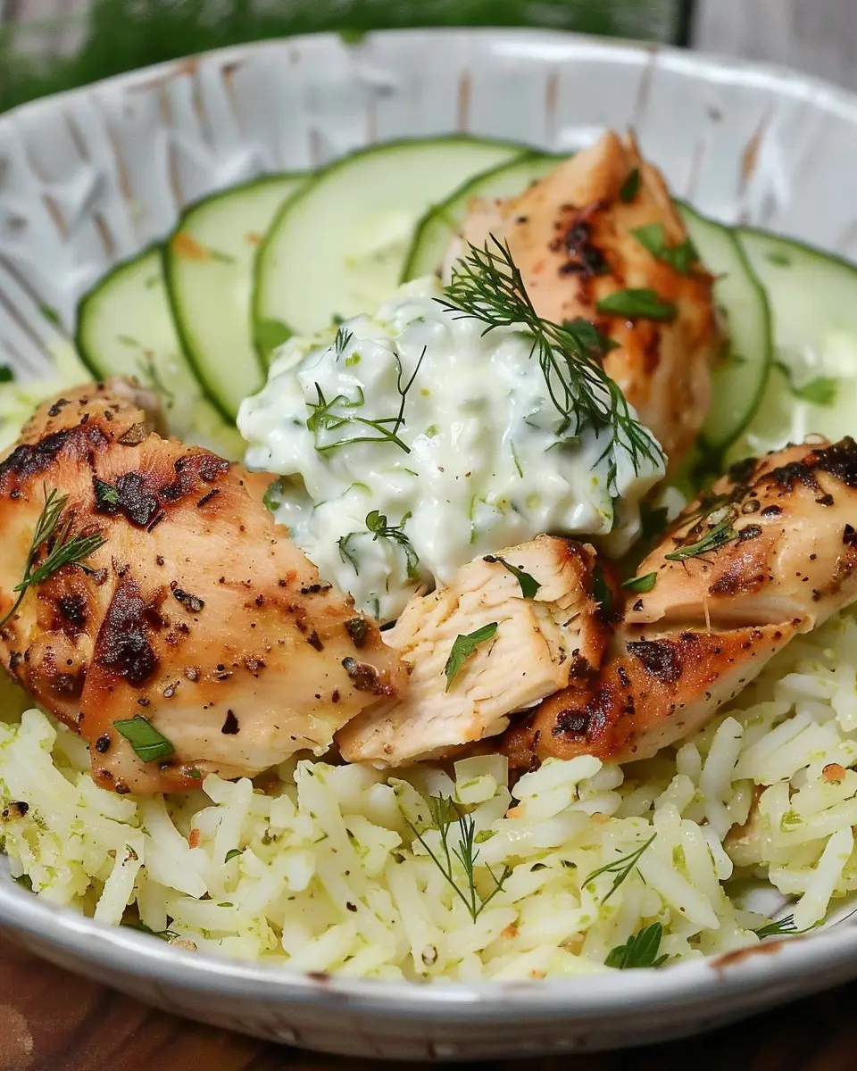 A simple and delicious family dinner recipe featuring tender chicken, flavorful tzatziki sauce, and fluffy rice.