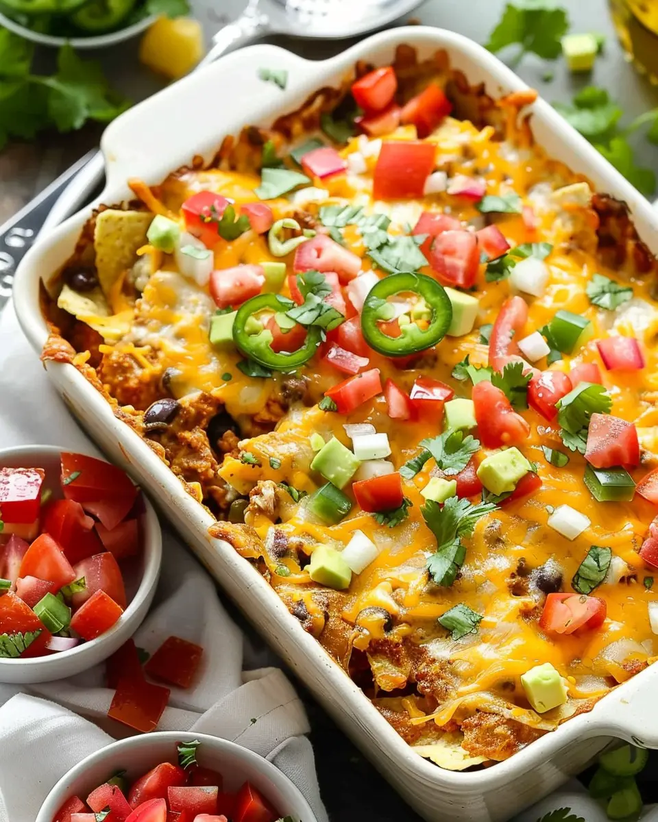 This easy chicken taco casserole is not only a breeze to prepare but also a fantastic way to please a crowd. Try it out, and you might just have a new favorite weeknight dinner on your hands!