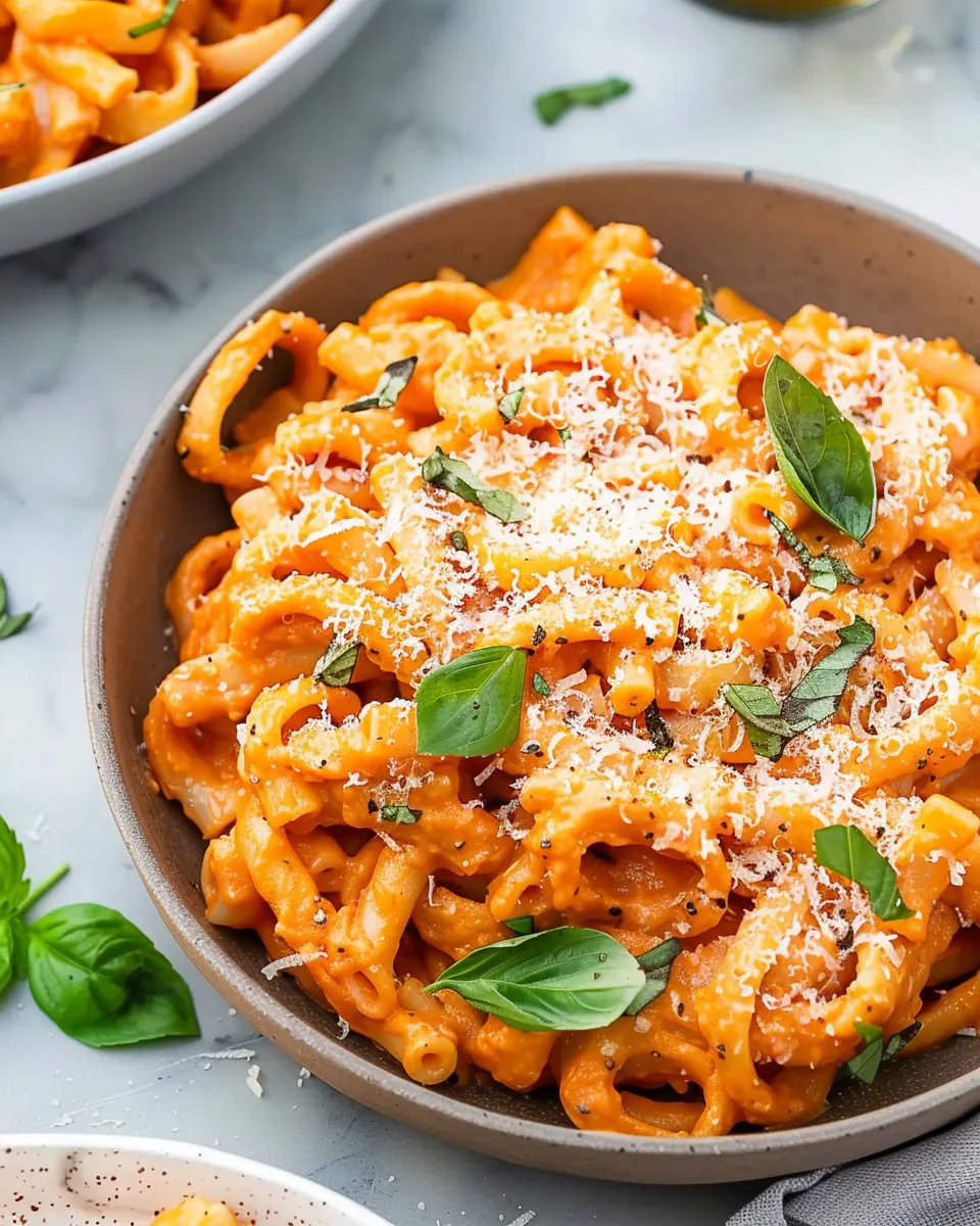 Presentation is key when serving your meal. A sprinkle of fresh basil on top of your easy one pot creamy tomato pasta doesn’t just add a pop of color but also enhances its flavor. You can also drizzle some high-quality olive oil for that glossy finish and a hint of richness. For an extra touch, shave some Parmesan or a dairy-free alternative right before serving. This elevates the visual appeal and lets your guests know you put in that extra effort.