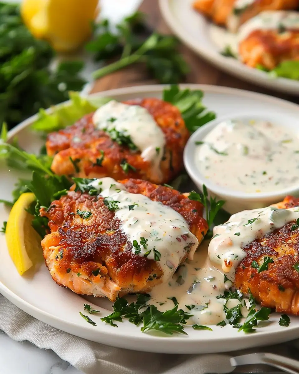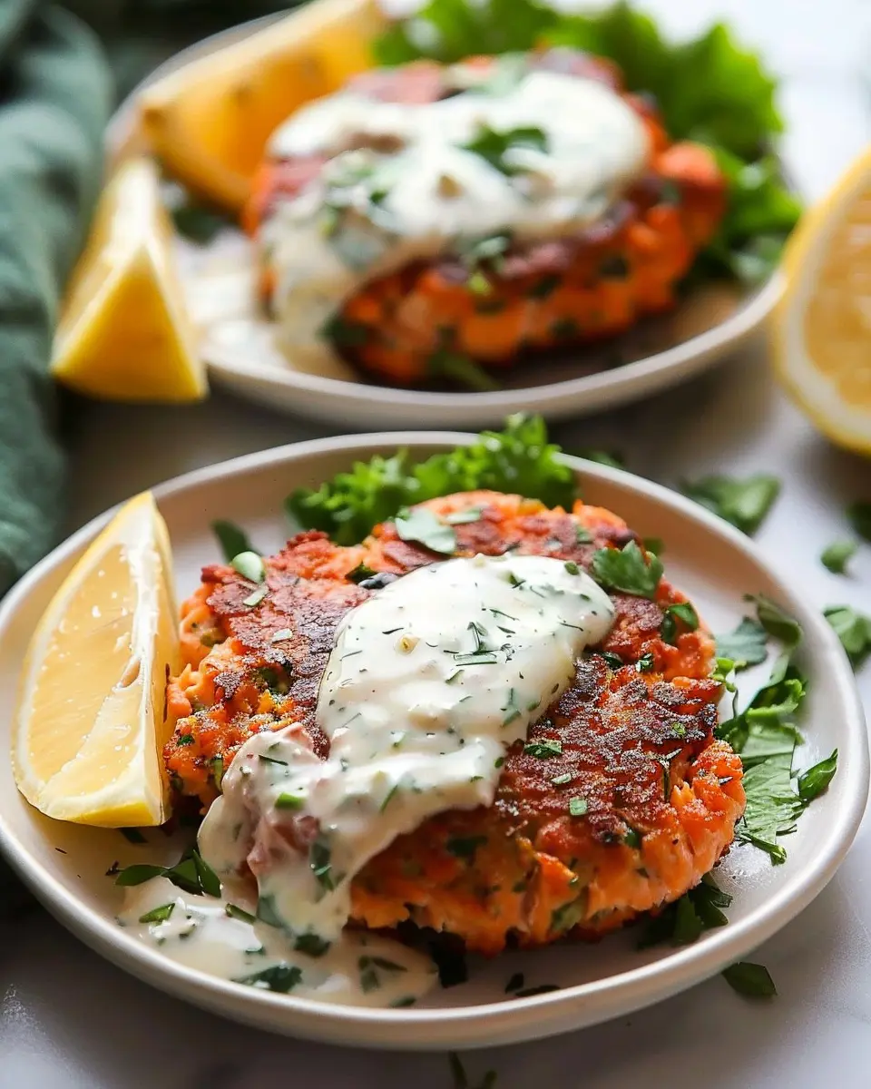 Easy Salmon Patties with Creamy Lemon-Garlic Sauce to Savor