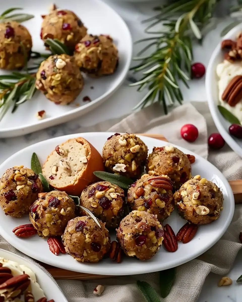 Festive Cranberry Turkey Stuffing Balls with Savory Sage and Pecans