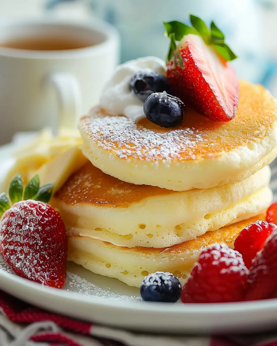 PrintFluffy Japanese Soufflé Pancakes: Light and Indulgent Perfection