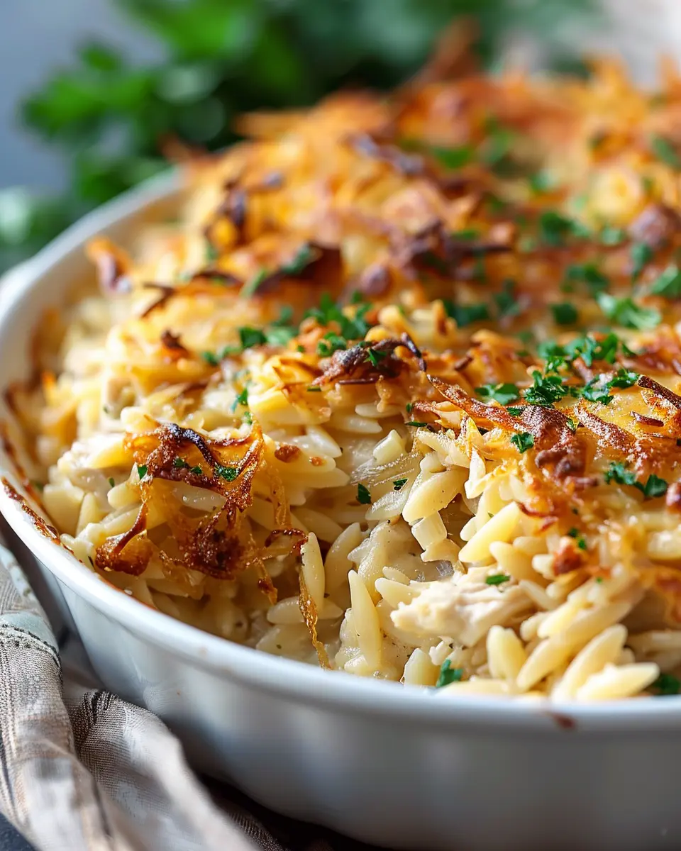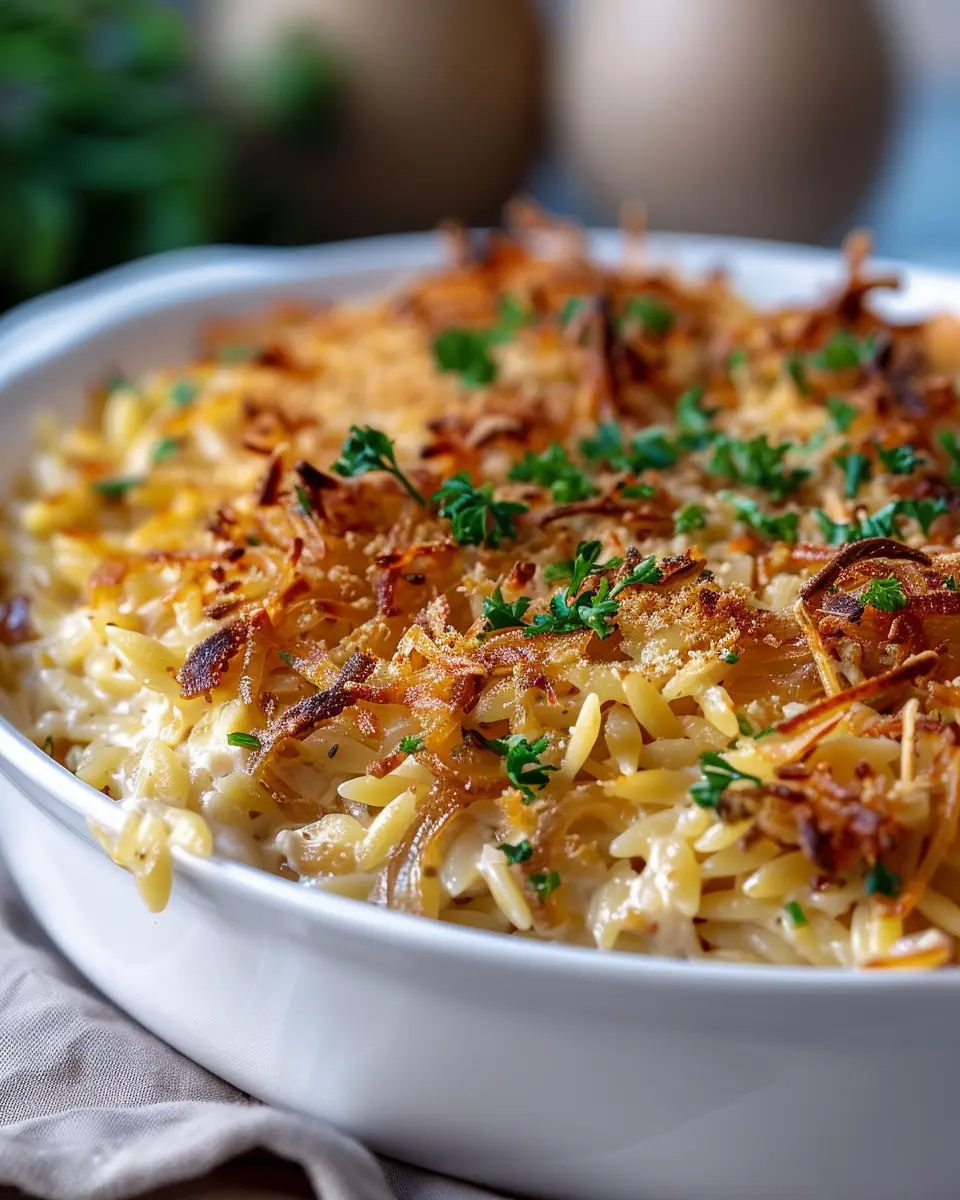 What makes this casserole truly special is its layers of flavor. The caramelized onions provide an irresistible sweetness, while the orzo brings a satisfying texture. Pair it with a simple side salad, and you have a complete meal that feels gourmet yet is incredibly straightforward.