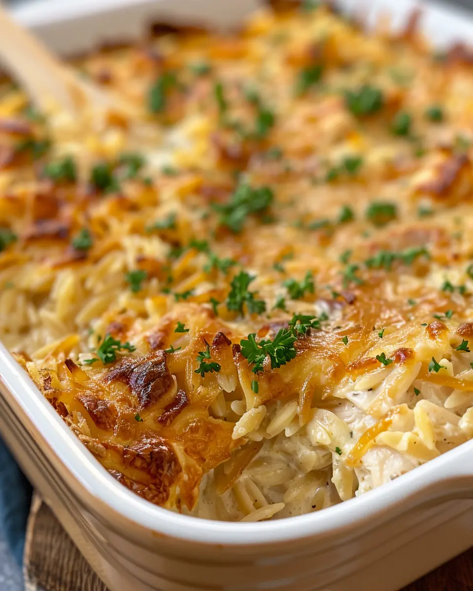 To elevate your French Onion Chicken Orzo Casserole, don’t skip the garnishes! A sprinkle of fresh parsley adds color and a burst of flavor. You might also consider: