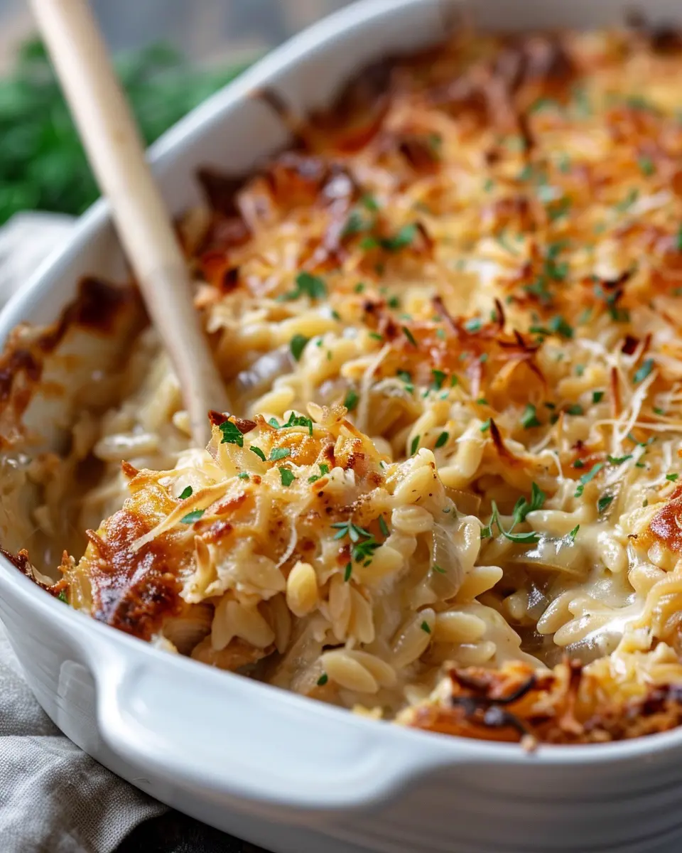 Introduction to French Onion Chicken Orzo Casserole