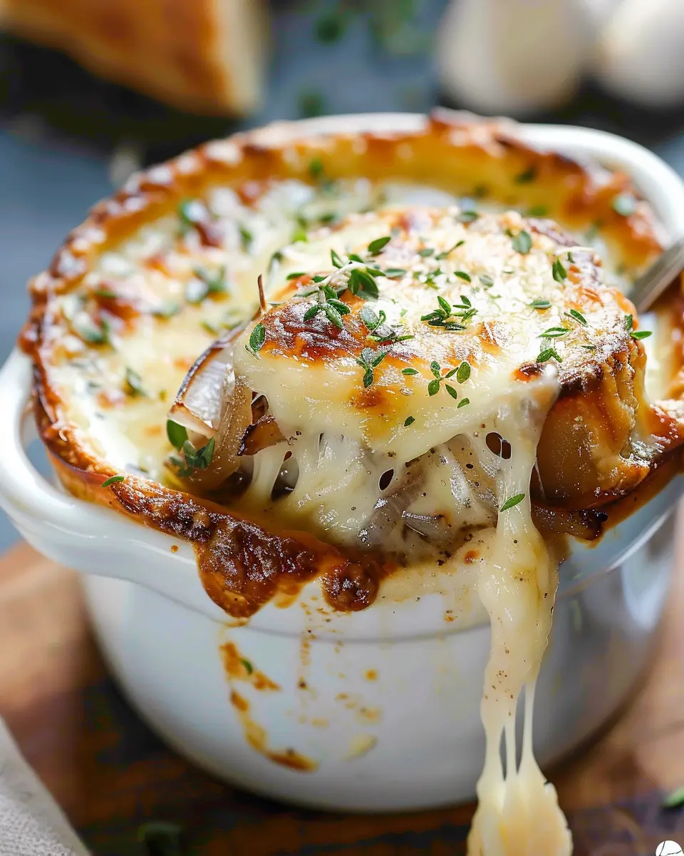 Plus, the gooey, melted cheese on top? That’s the cherry on top of this savory sundae! The combination of textures—from the crunchy bread to the silky broth and stretchy cheese—creates an experience that is not just a meal but a moment of pure comfort.