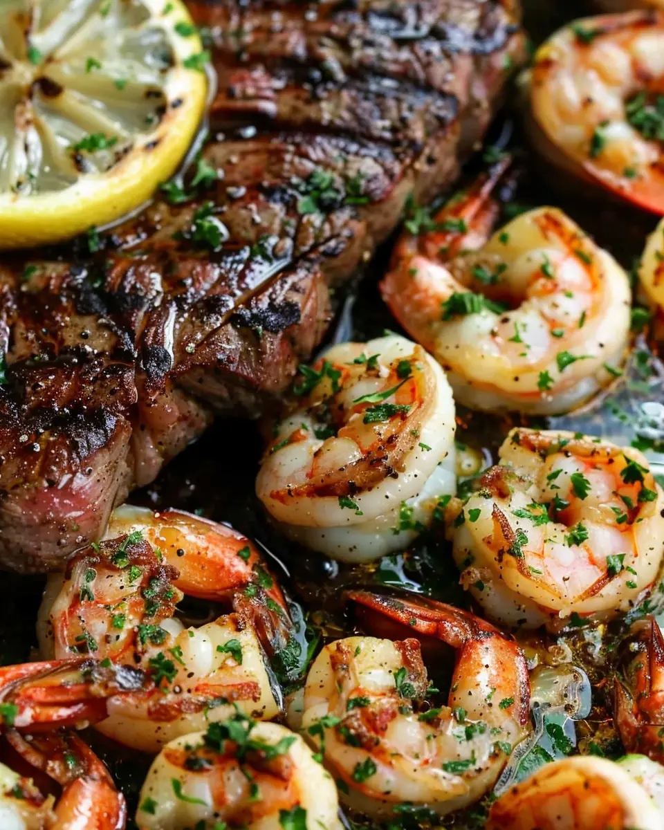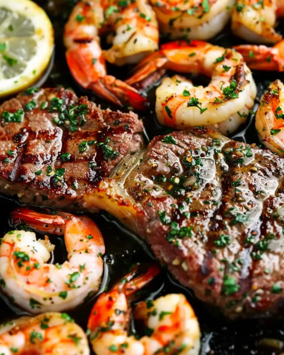 Delight in a rich and savory Garlic Butter Grilled Steak and Shrimp dinner that brings together the best of both worlds for a truly indulgent experience.