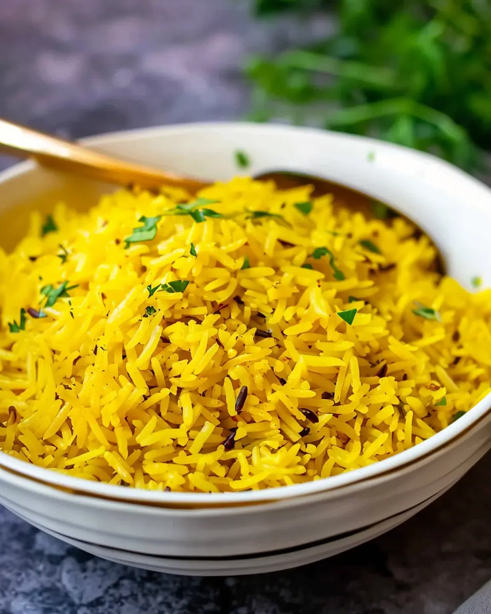This rice is best served warm. Its comforting aroma and vibrant color make it a perfect centerpiece for weeknight dinners or meal prepping.
