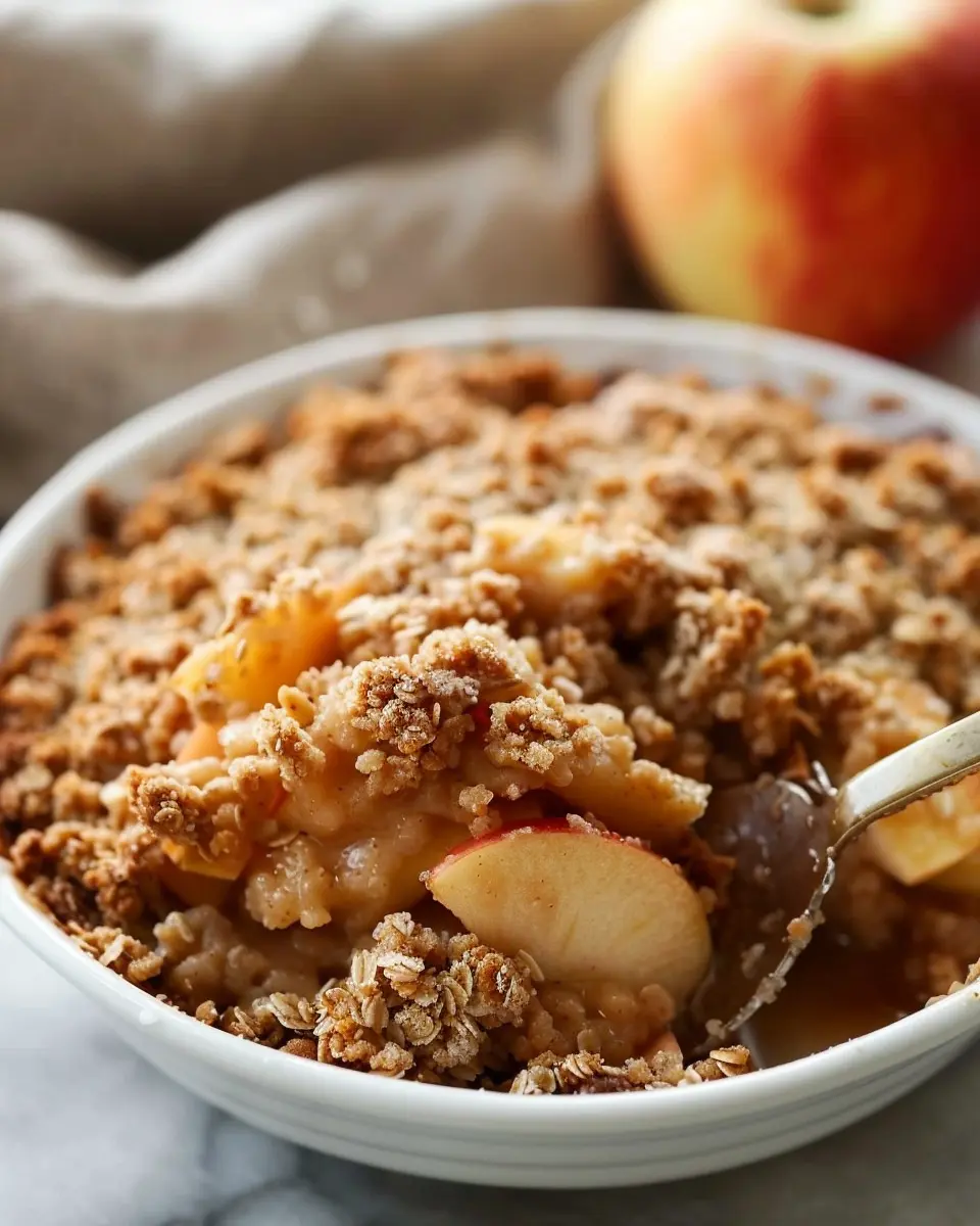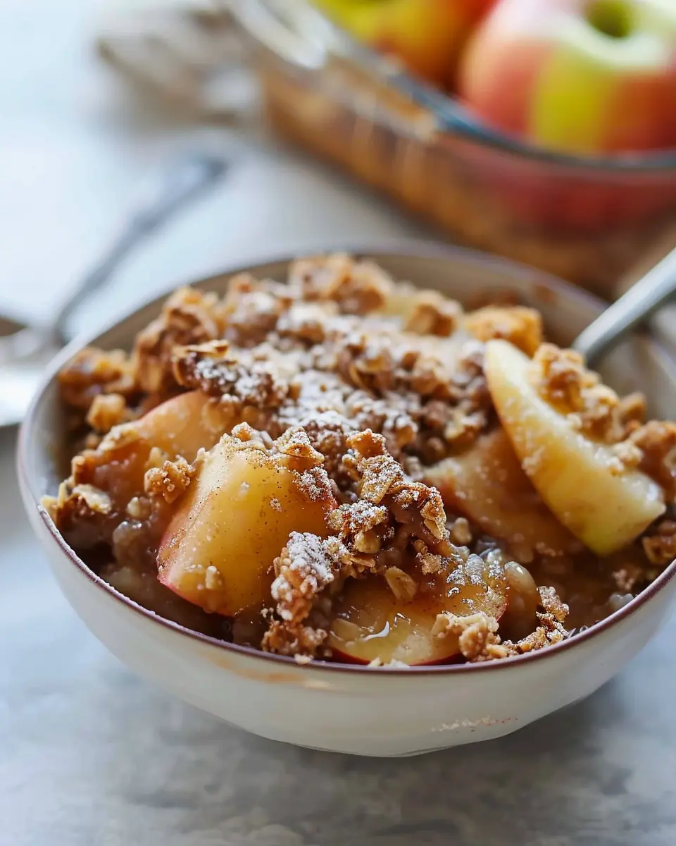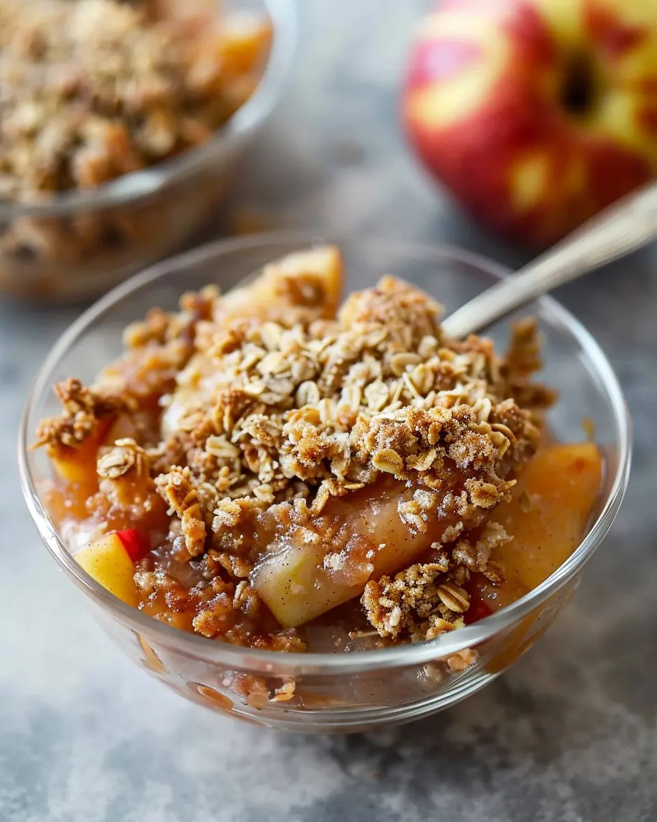 A delicious and nutritious breakfast option featuring apples and a crumbly topping.