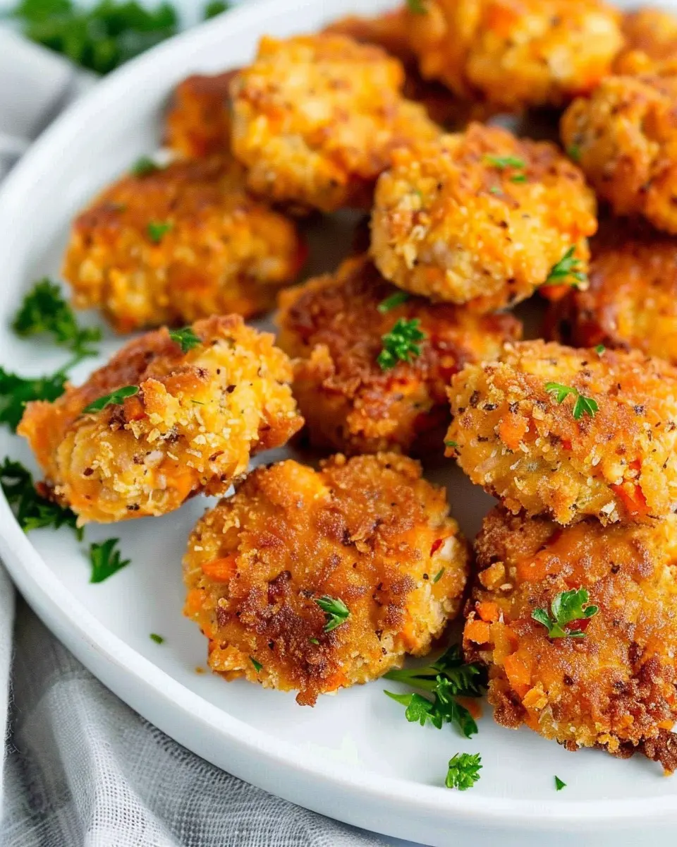 - Form the mixture into bite-sized nuggets and place on a lined baking sheet.