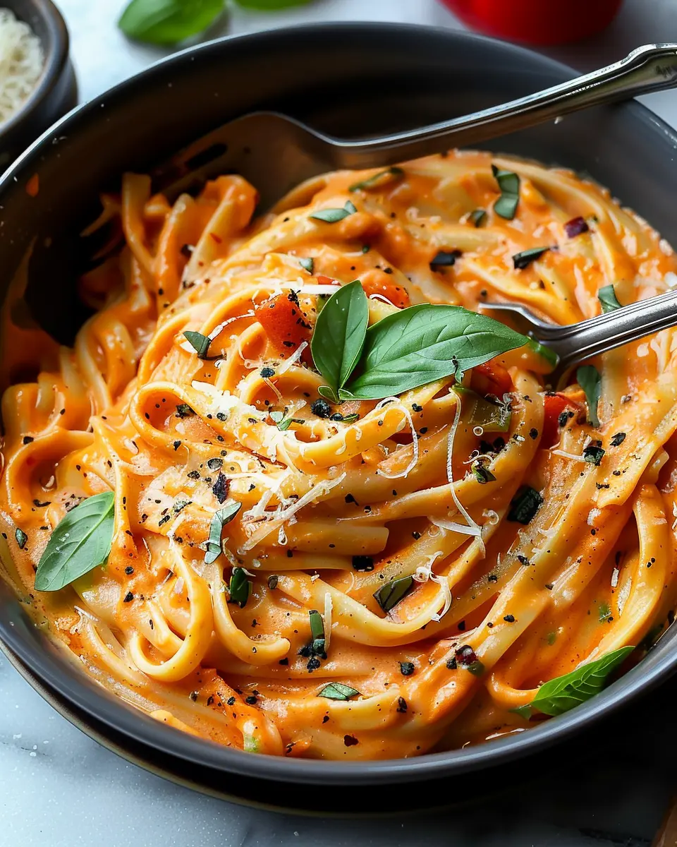 Once you’re prepped, the magic happens in about 20 minutes. This time covers simmering your roasted red peppers, blending them into a dreamy sauce, and coaxing those flavors together with the pasta. You may want to practice patience—it’ll be worth it!