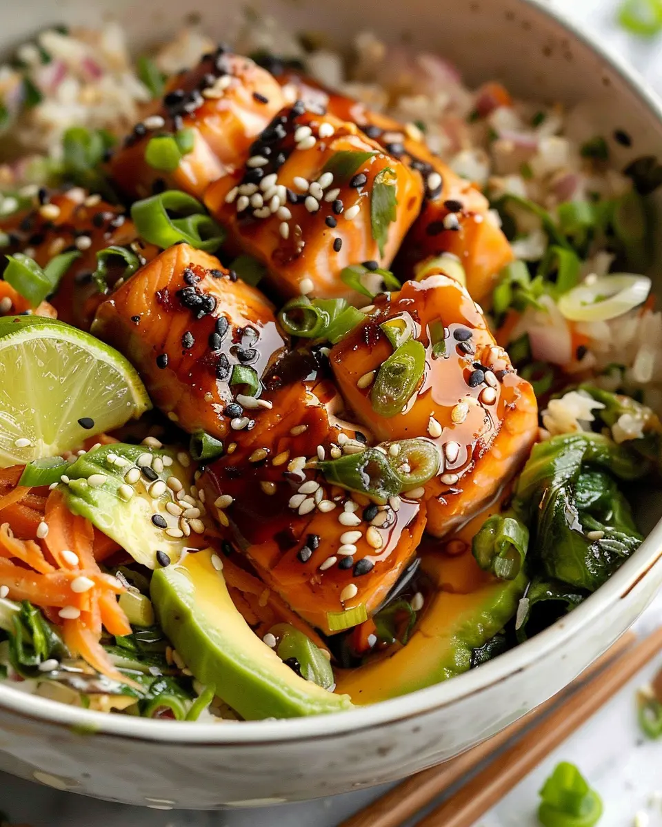 Elevating your honey glazed salmon bowl recipe goes beyond the salmon itself. Pairing it with a bed of fluffy quinoa or brown rice adds a nutritious base that complements the sweet glaze perfectly. Fresh, steamed vegetables like broccoli or snap peas bring a satisfying crunch and vibrant color to the plate. For an exciting twist, consider avocado slices or a sprinkle of edamame for added creaminess and protein.