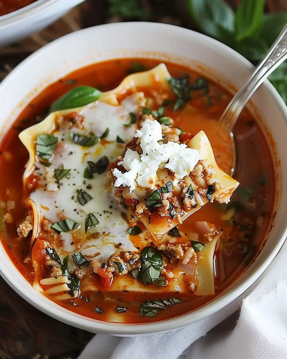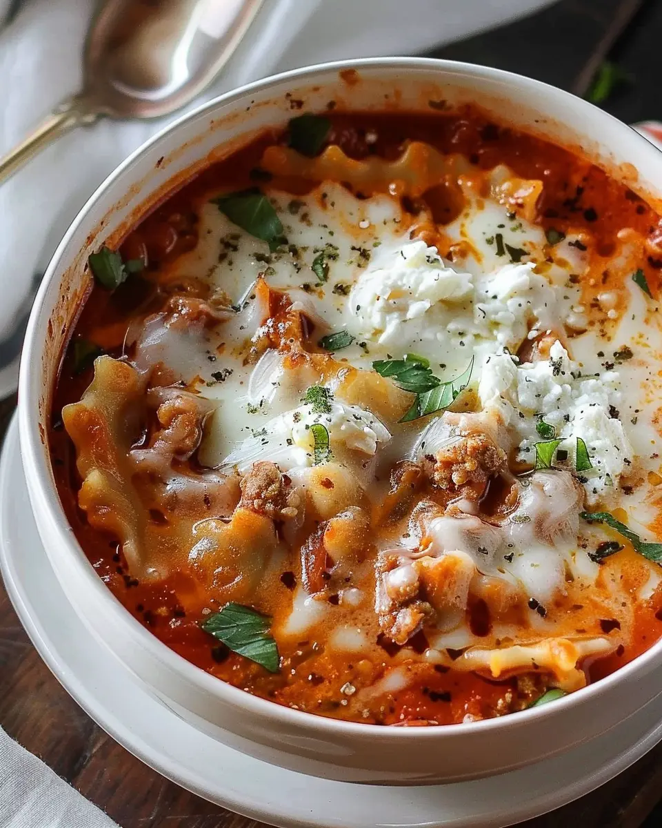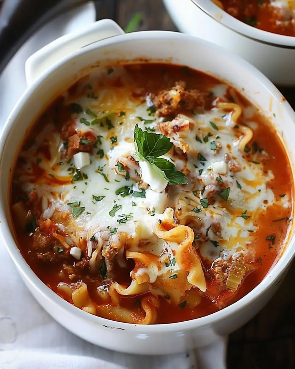 Lasagna soup can be quite versatile! For those following a vegetarian diet, you can easily substitute meat with lentils or mushrooms. If you’re gluten-free, opt for gluten-free pasta or even spiralized veggies. The soup is also a great source of calcium thanks to the cheese layers typically packed inside.