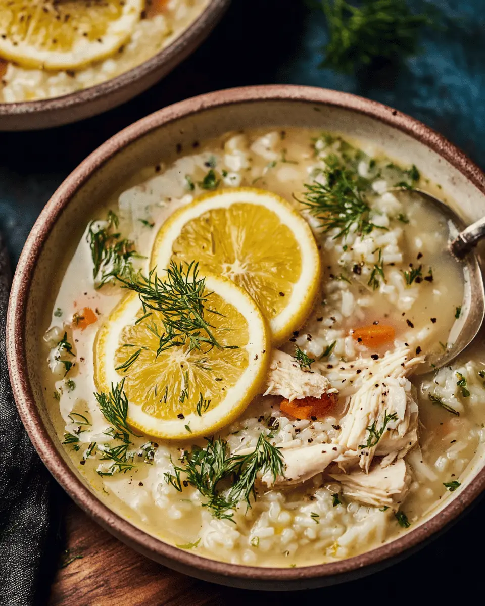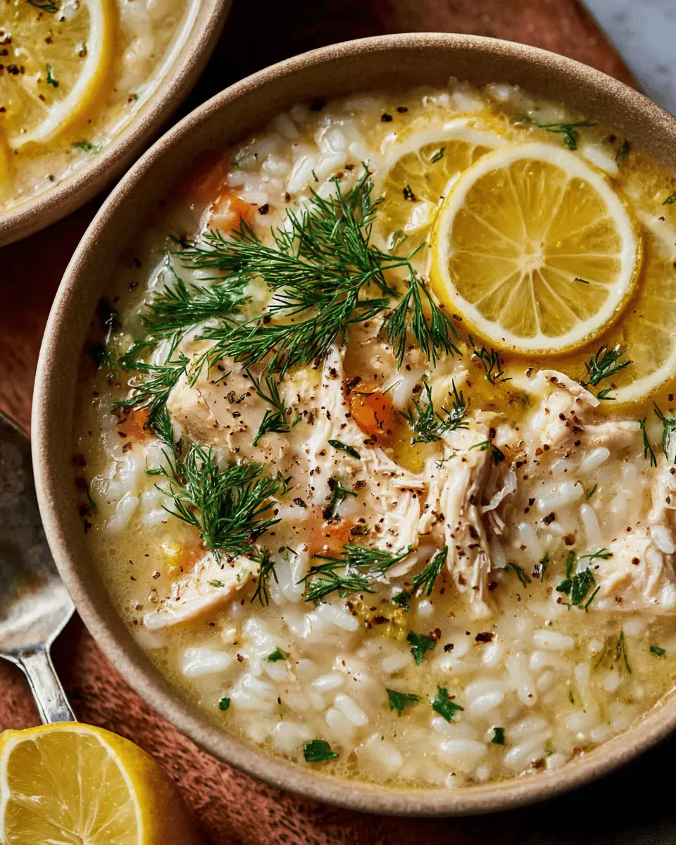 PrintLemony Greek Chicken Rice Soup: A Comforting Delight with Dill
