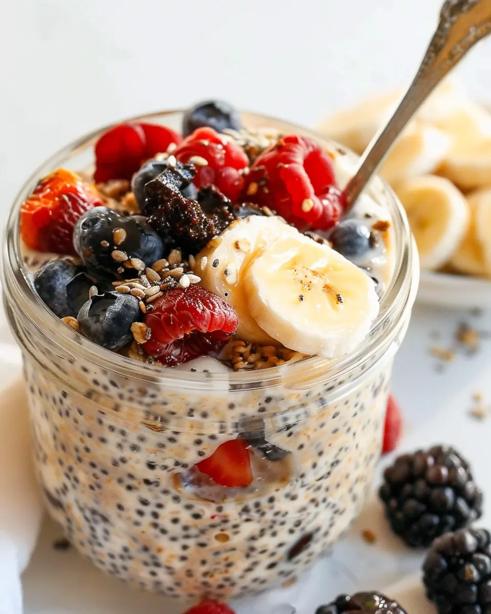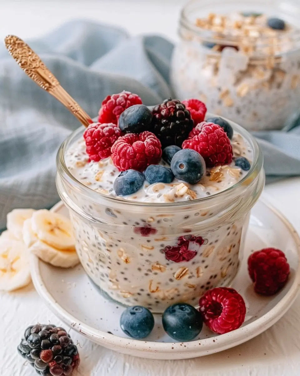 These foundational ingredients will not only keep your overnight oats light on the calories but also ensure they’re hearty and satisfying.