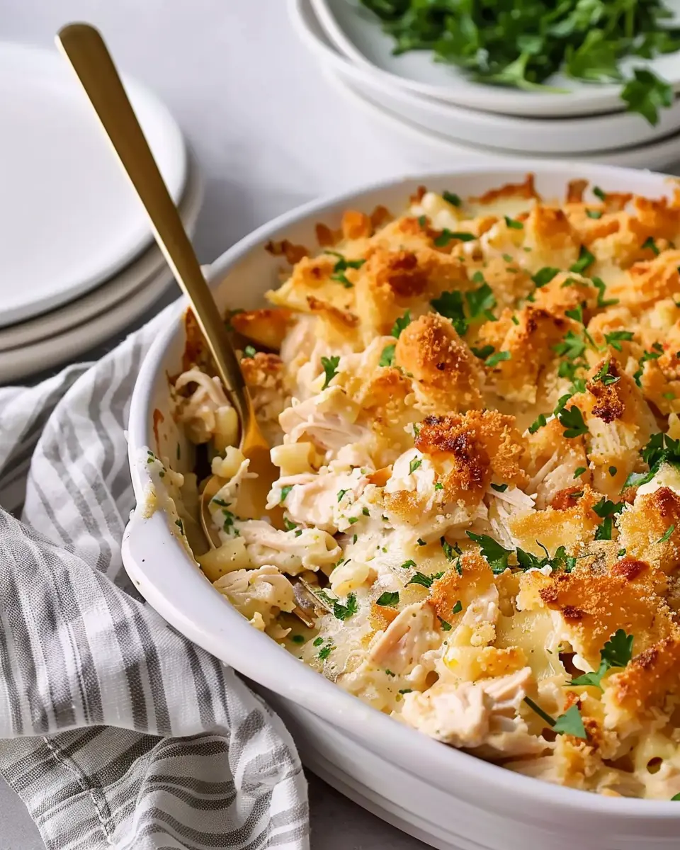 This Million Dollar Chicken Casserole is the ultimate comfort food that will satisfy your cravings for a delicious and hearty meal.